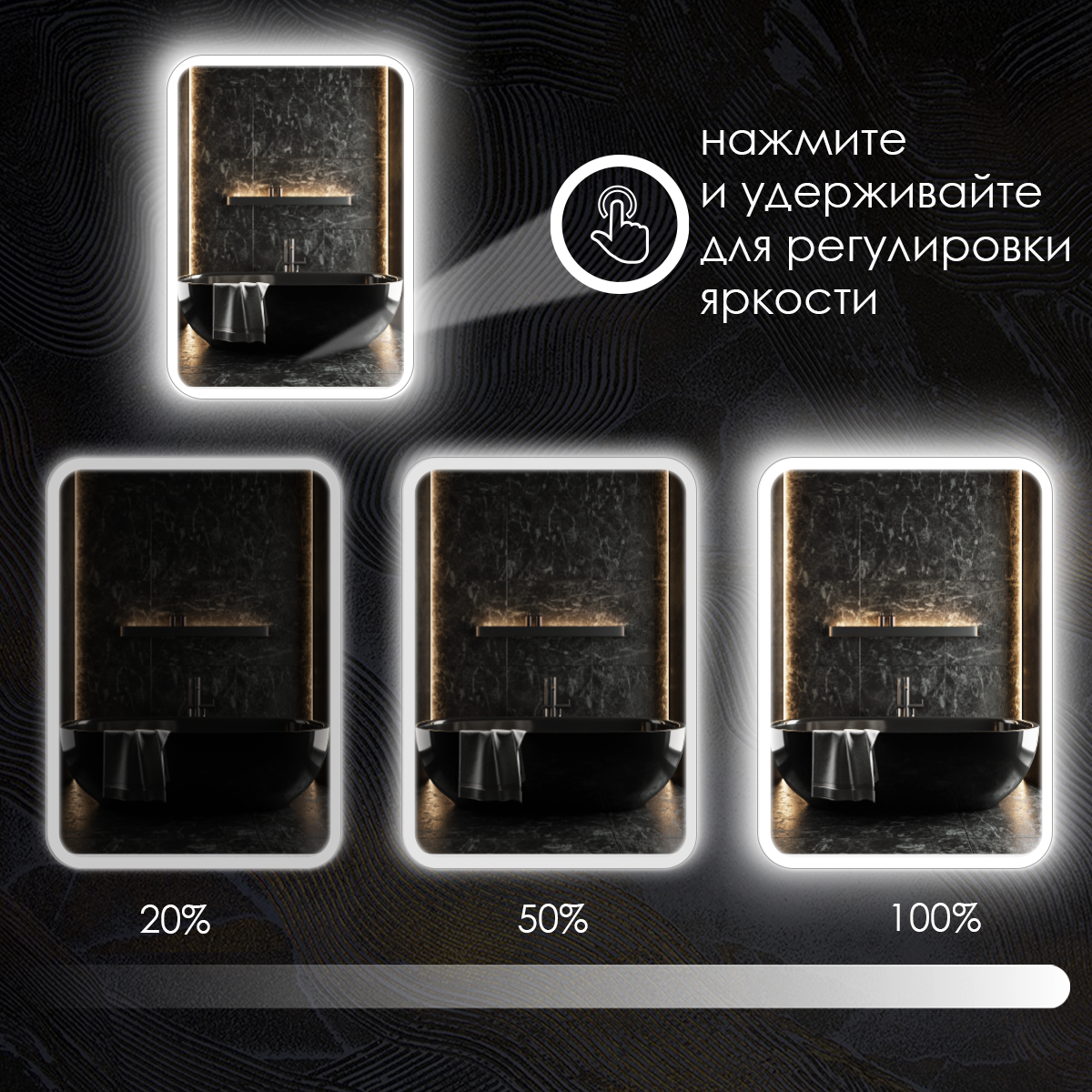 Зеркало настенное для ванной КерамаМане 70*100 см с холодной подсветкой 6000 К с сенсорной кнопкой