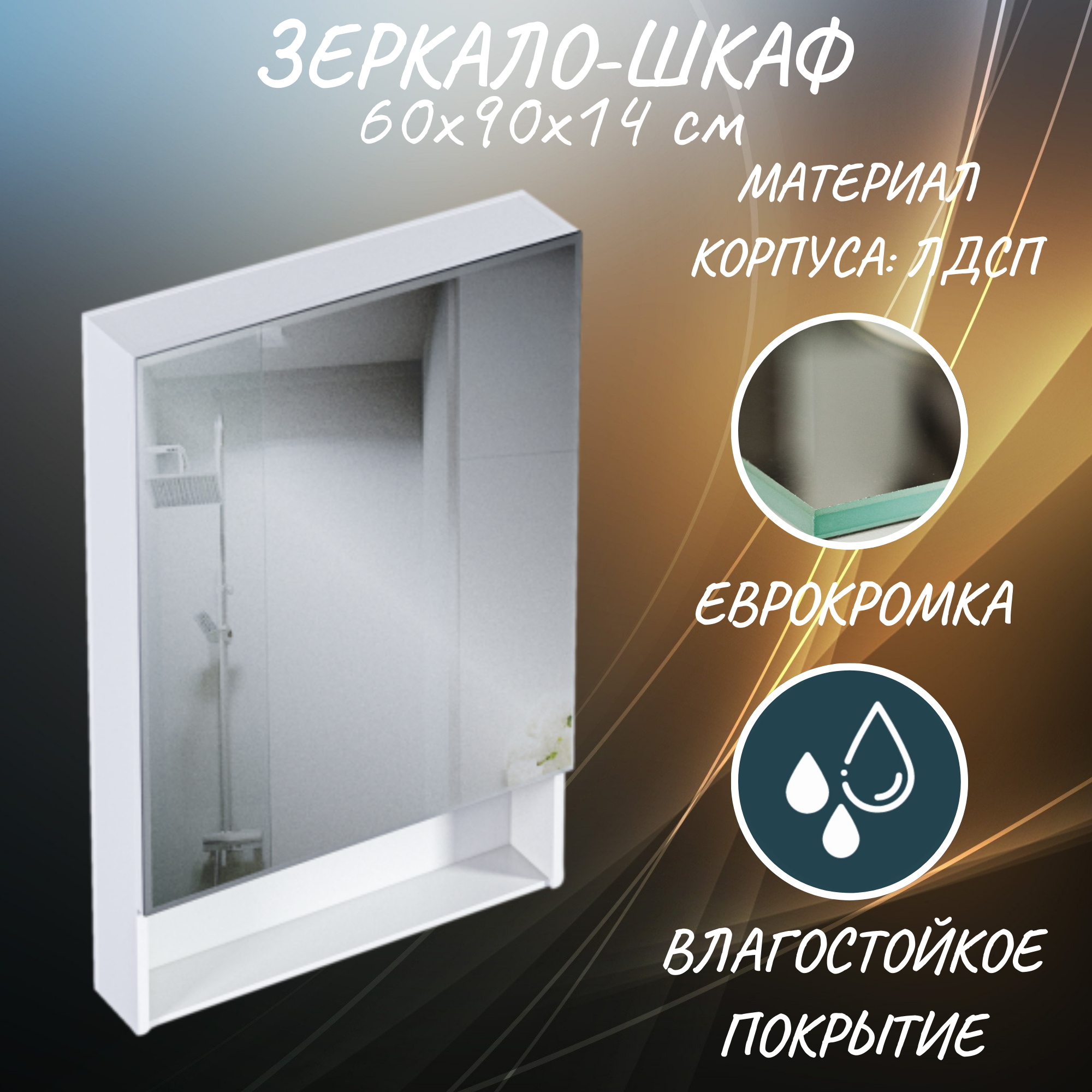 Зеркало-шкаф 60х90 см подвесное в ванную цвет Белый Глянец Mira 1Marka У83225МП информация: