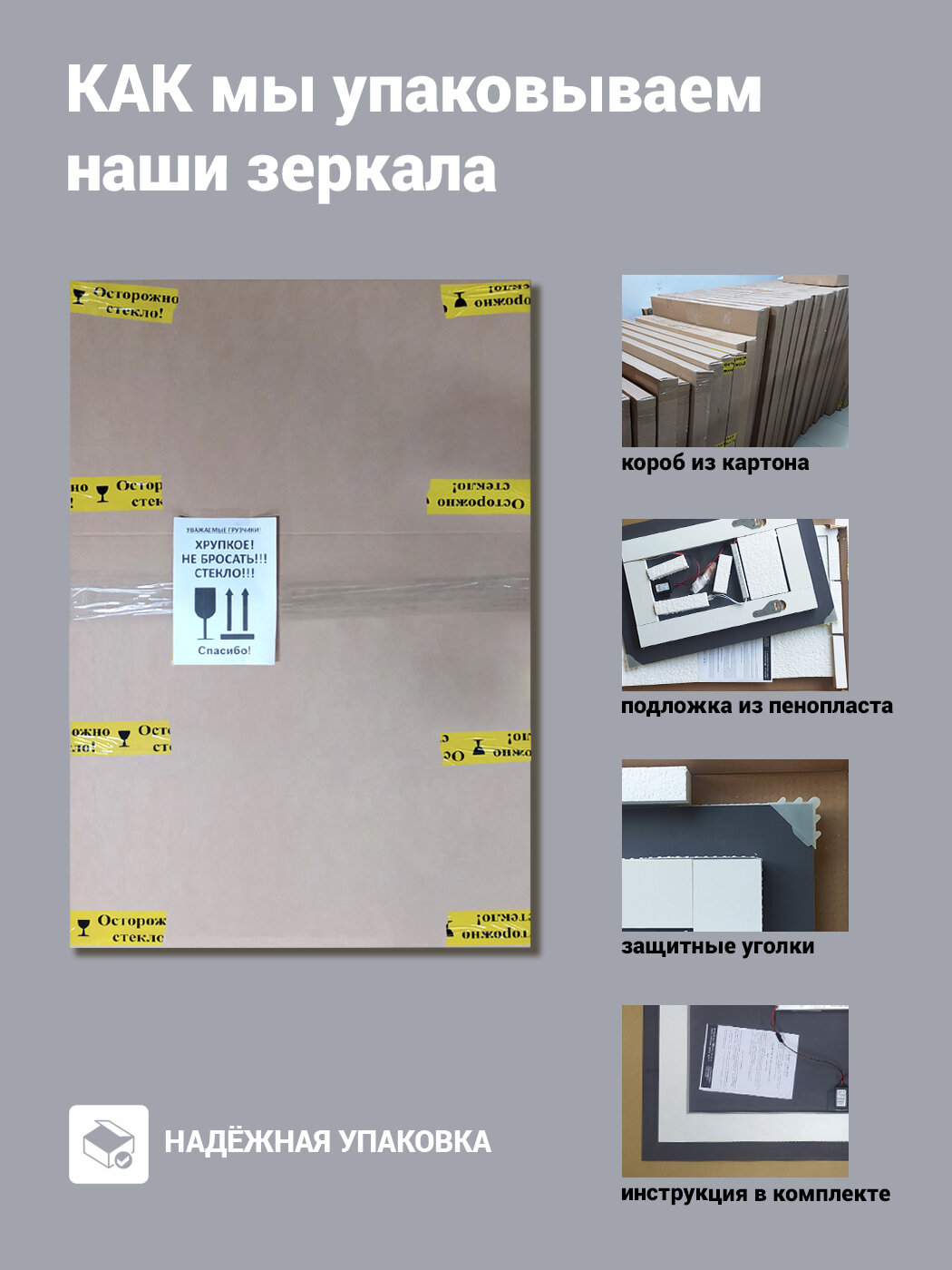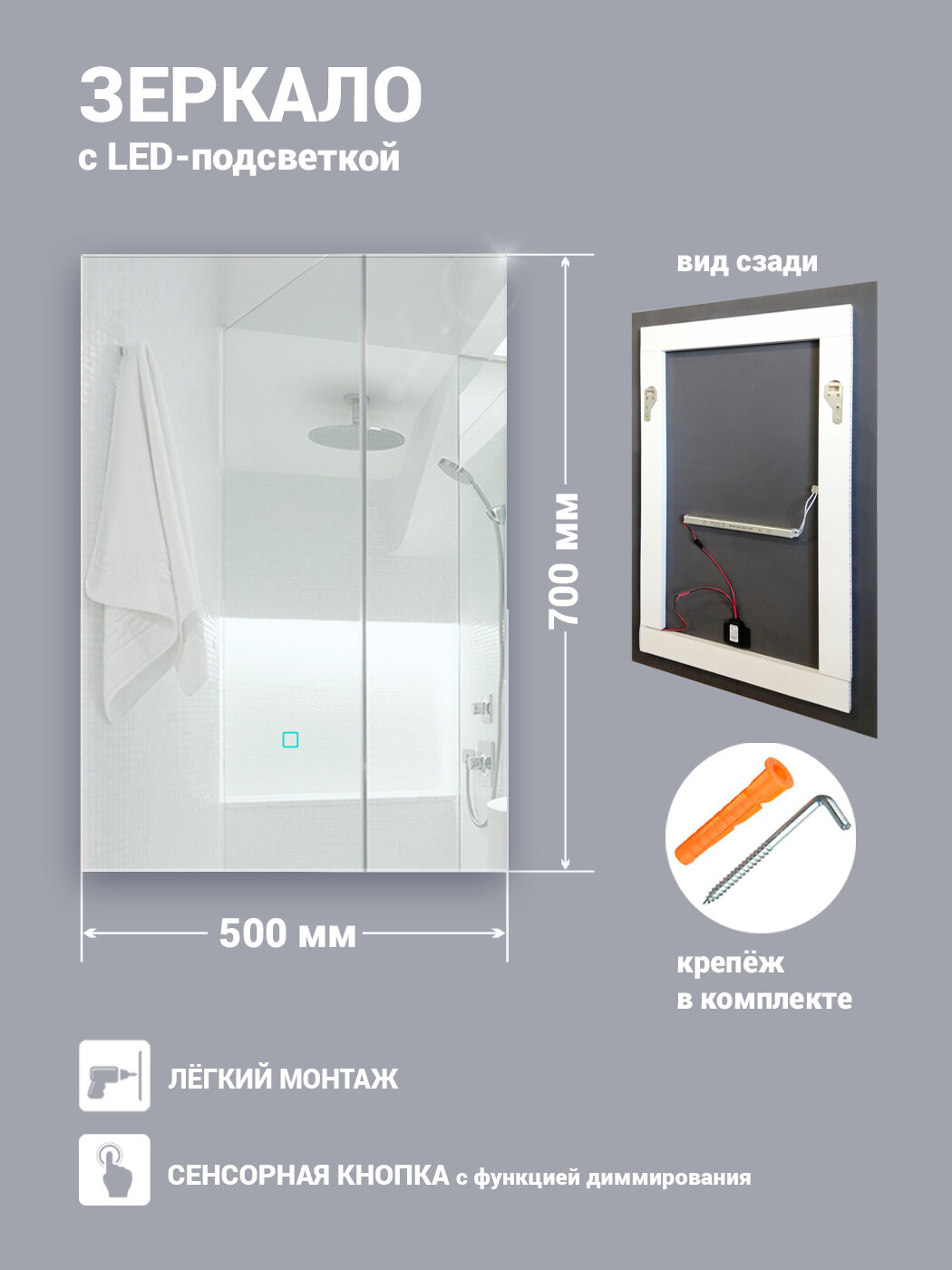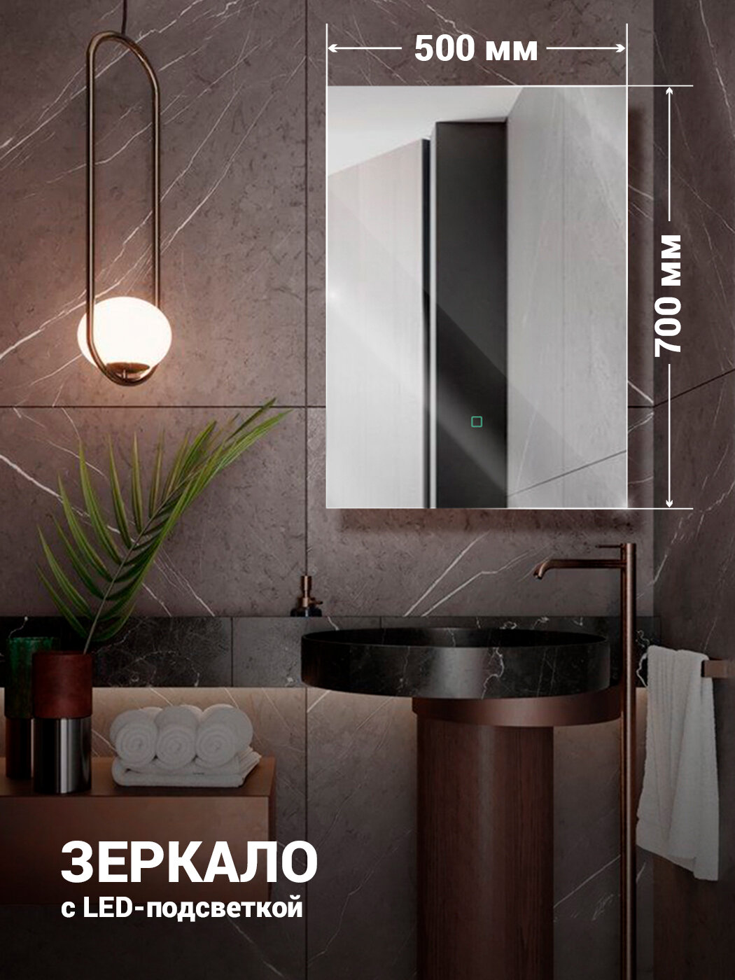 Зеркало с подсветкой для ванной комнаты и прихожей "Дом Стекла 21", 70x50 информация: