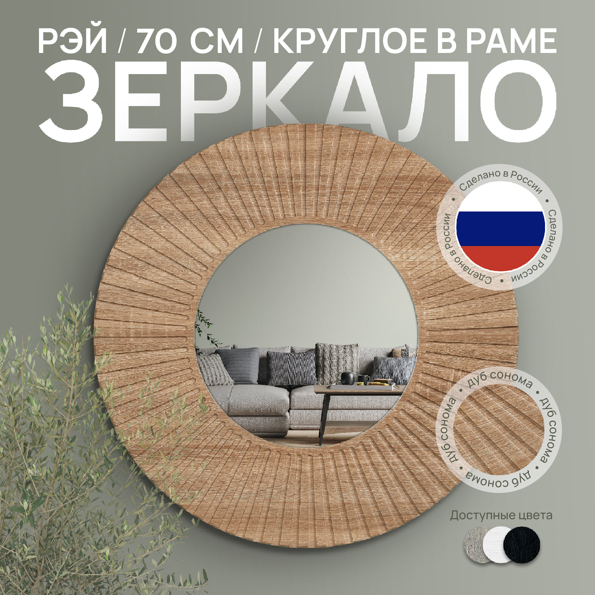 10 цен на Зеркало Postermarket "Рей", круглое, настенное, в раме, цвет : дуб сонома, 70х70 см