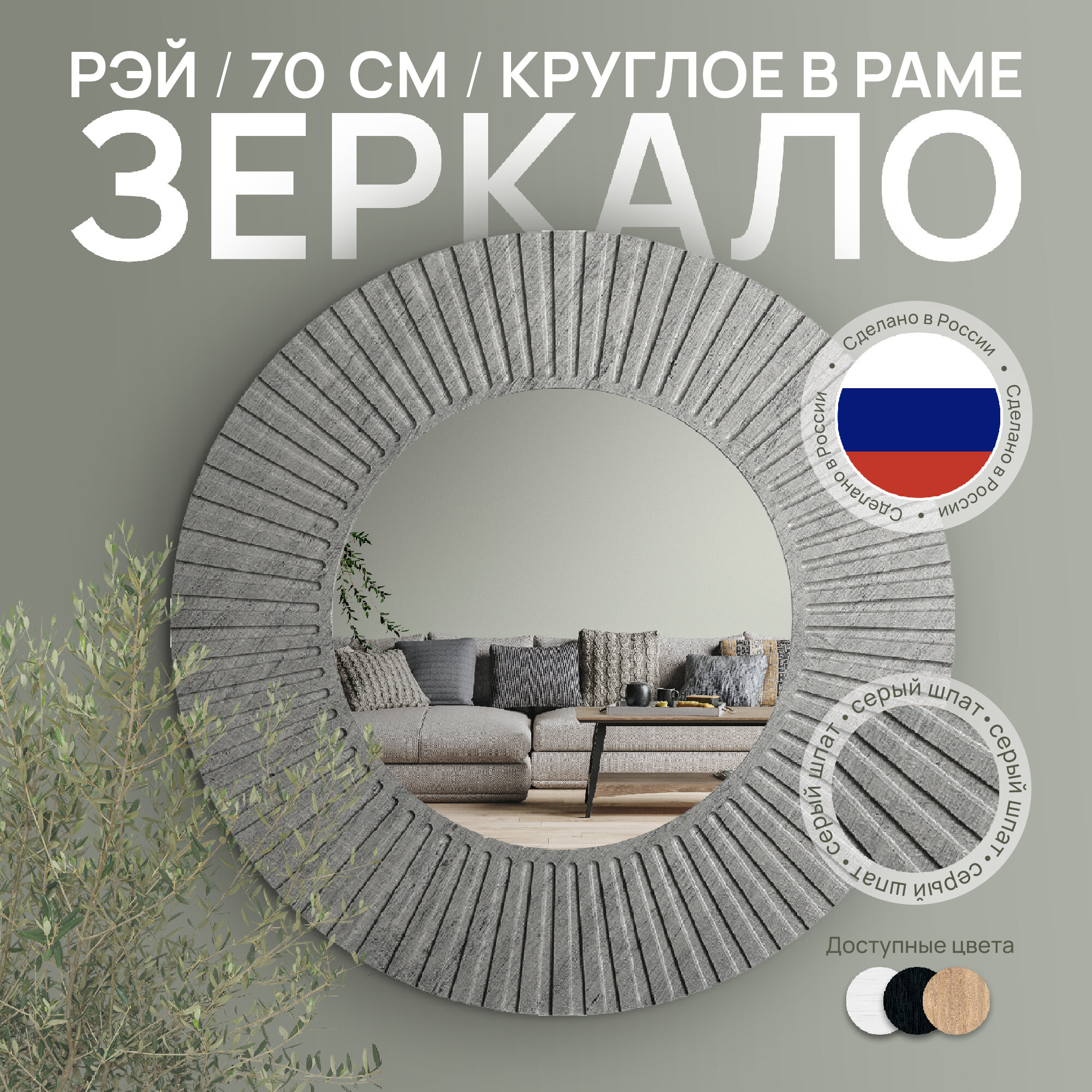 10 цен на Зеркало Postermarket "Рей", круглое, настенное, в раме, цвет : серый, 70х70 см