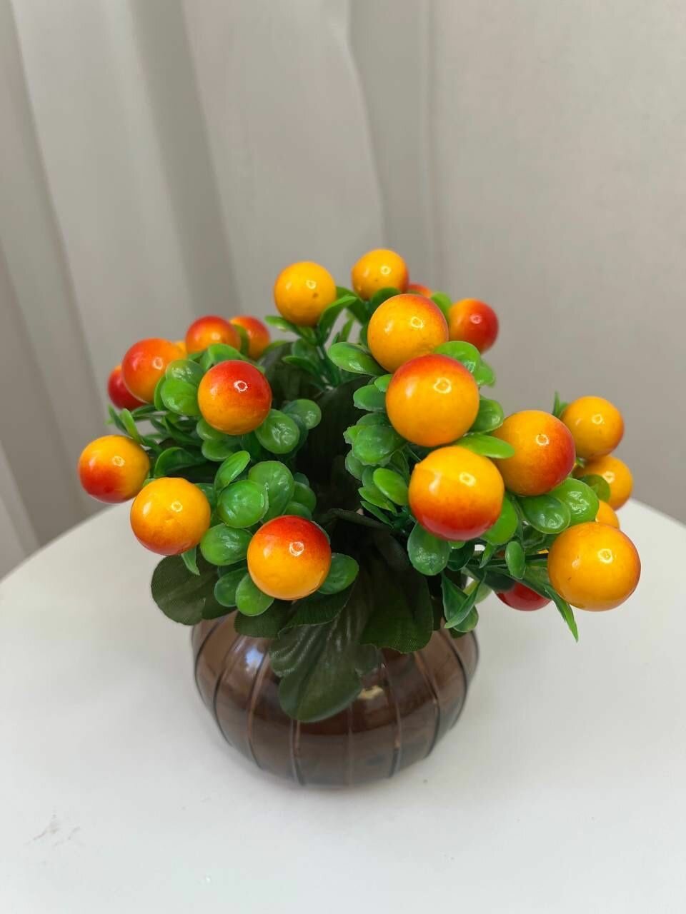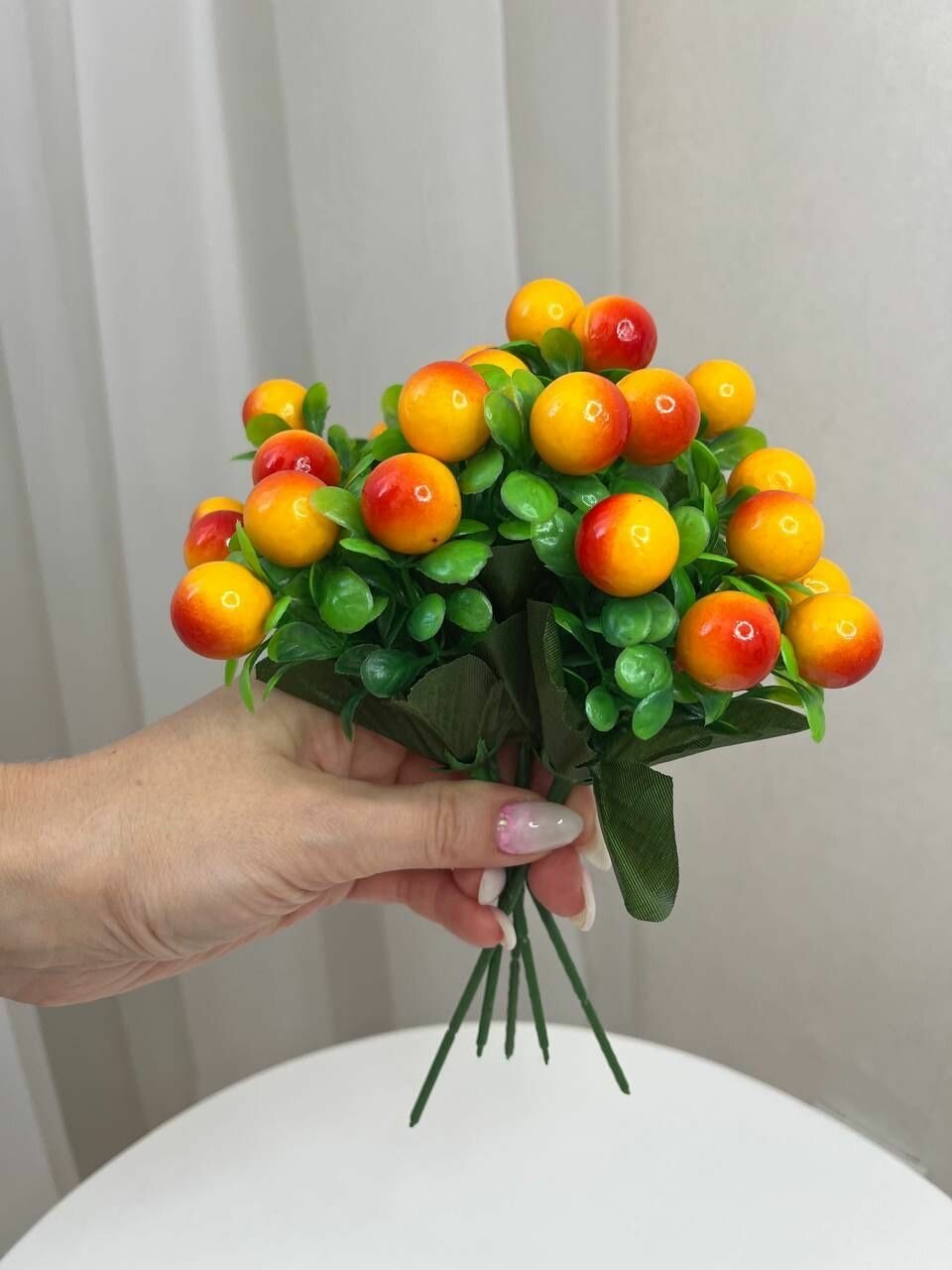 Отзывы на Искусственные цветы, Ветка с желто-оранжевыми ягодками , растение для декора дома 20см. 5шт