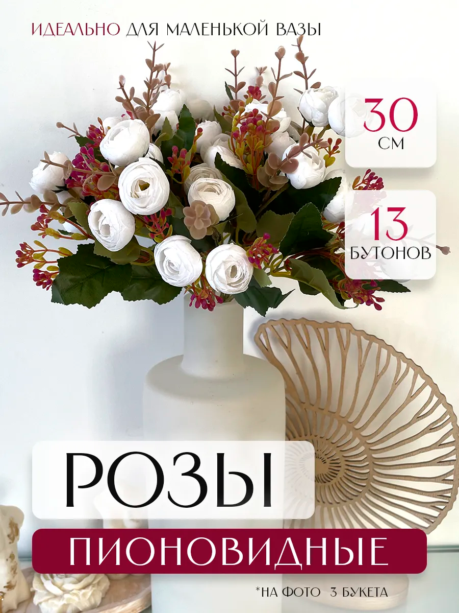 Отзывы на Искусственные пионовые розы Tiko, для декора, пластик/текстиль, белые, 30см