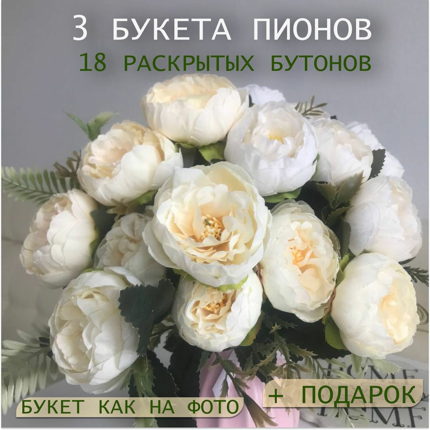 10 цен на Искусственные цветы для декора/пионы цветочная композиция/букет для интерьера 3 куста 31 см/подарок божья коровка