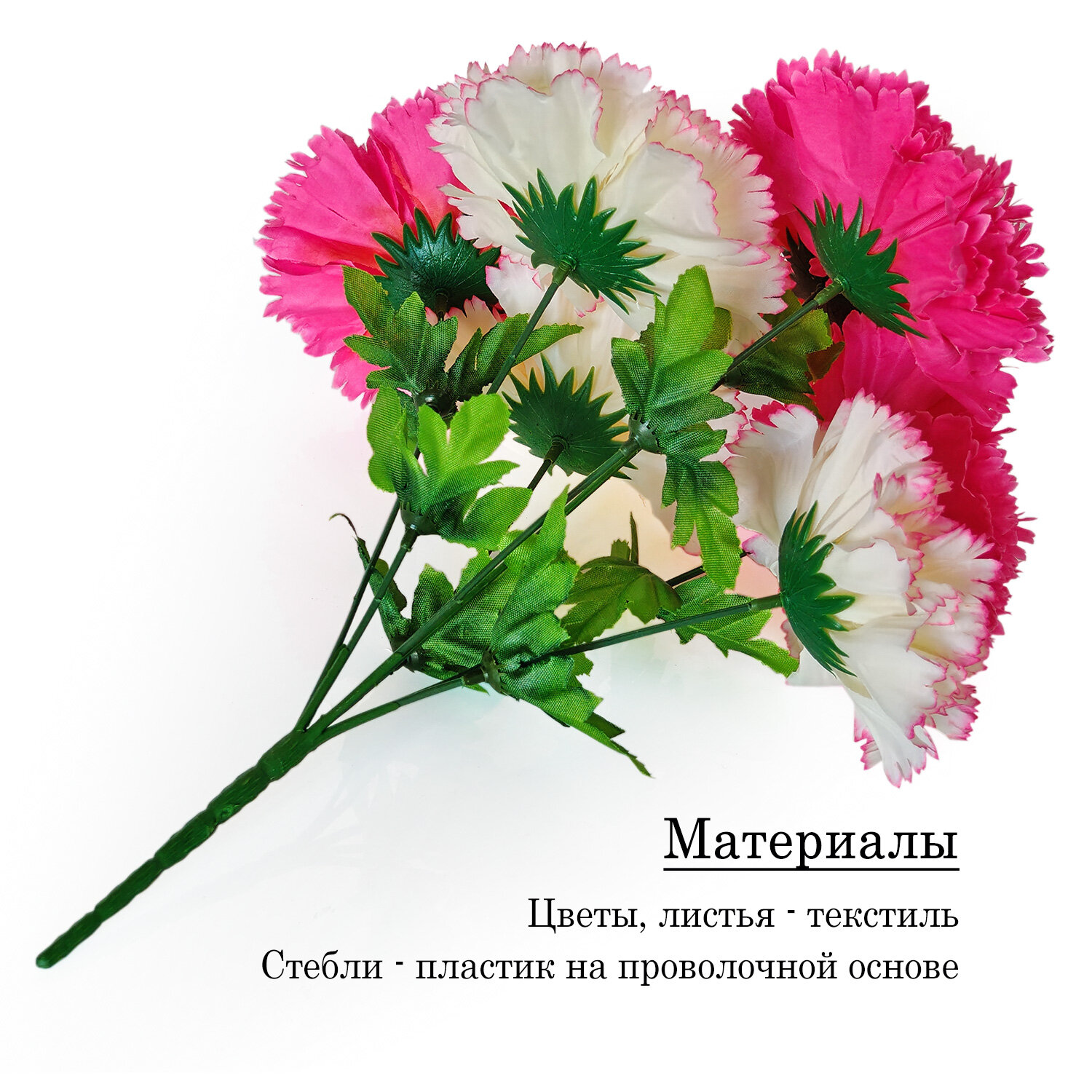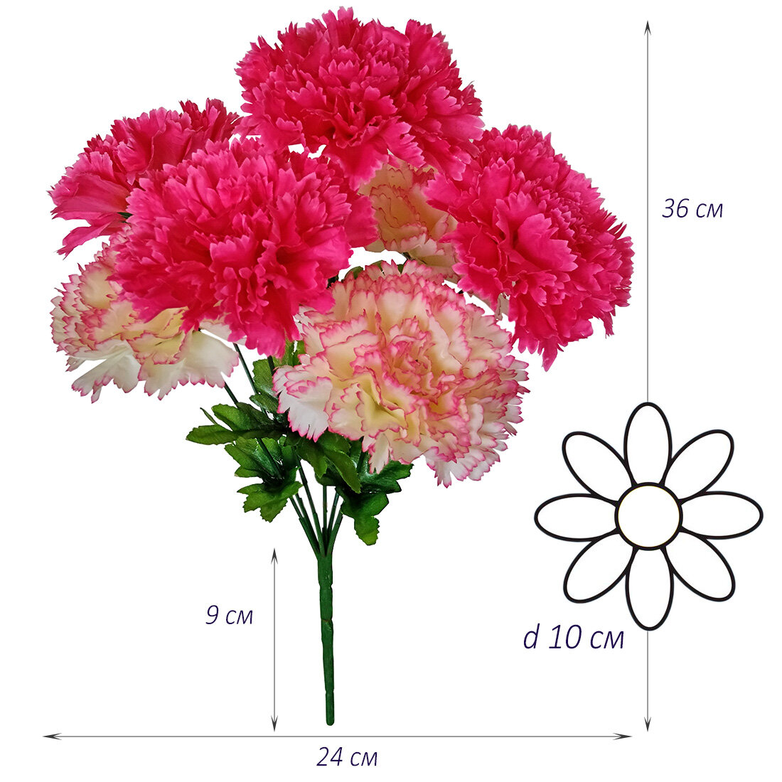 Искусственные цветы "Гвоздики розовые", букет 24х36 см, 7 голов информация: