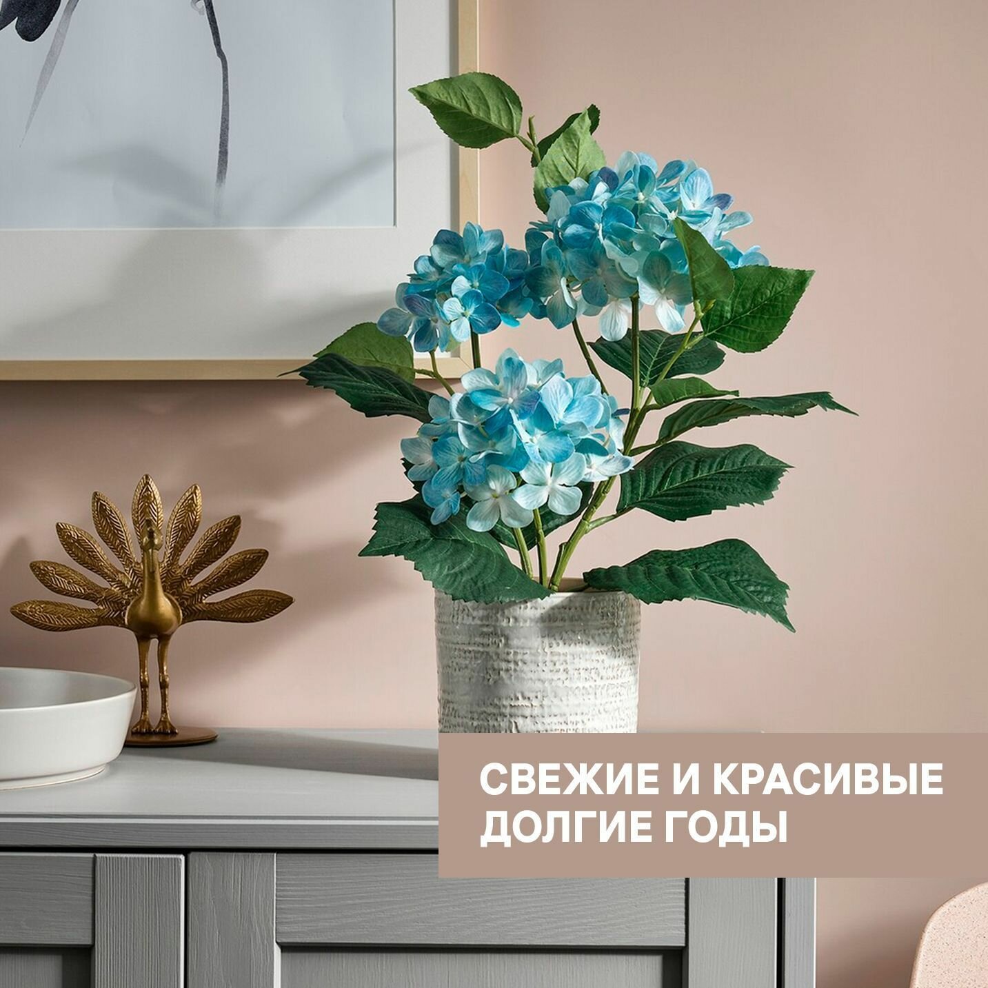 Отзывы на Искусственное растение в горшке IKEA FEJKA фейка Гидрангея, 12 см горшок, высота 50 см, синий