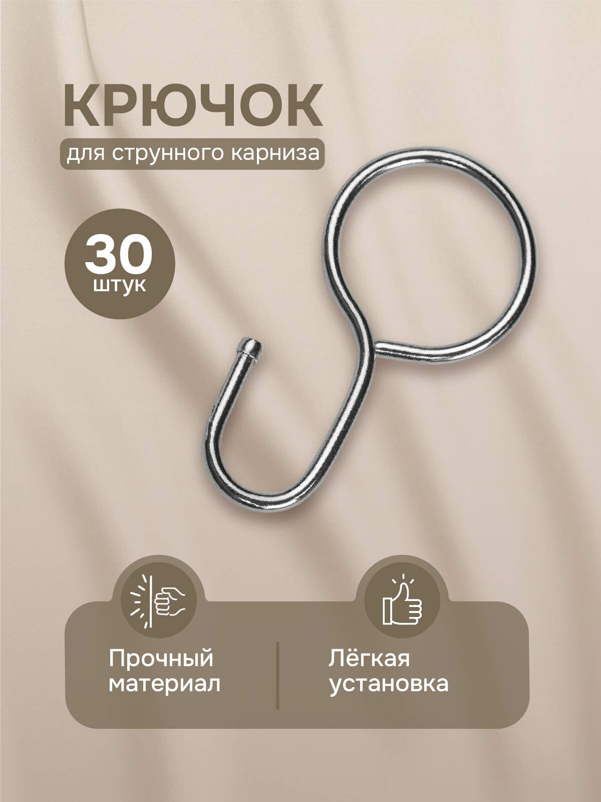 10 цен на Крючки для струнного карниза "Эскар", 30 шт, 45х12 мм, металл, серебристый, арт.1178003