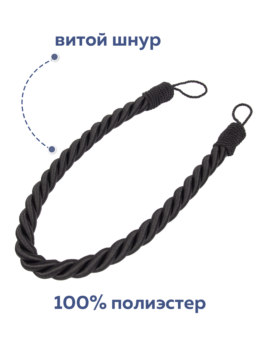 10 цен на Подхваты для штор "Витой Шнур" Mirtex, 75см, черный, текстильные - 1 шт.