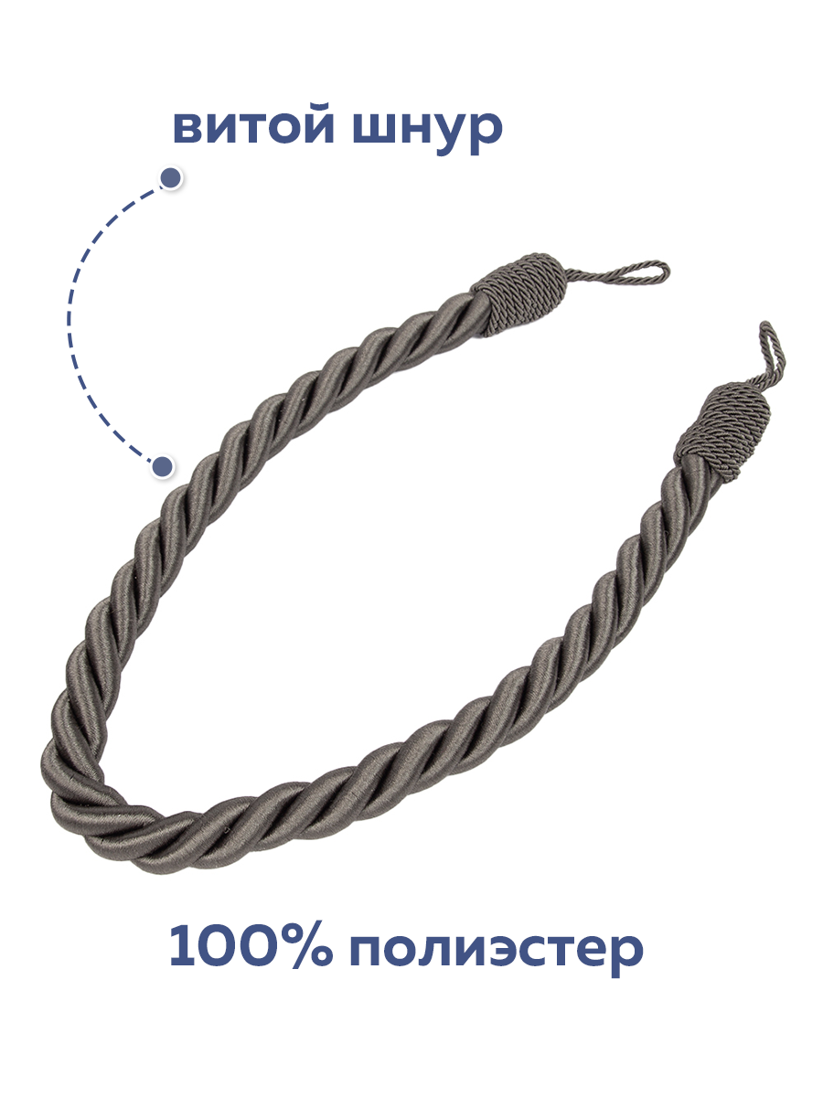 Подхваты для штор Mirtex "Витой Шнур", текстиль, темно-серые, 1шт информация: