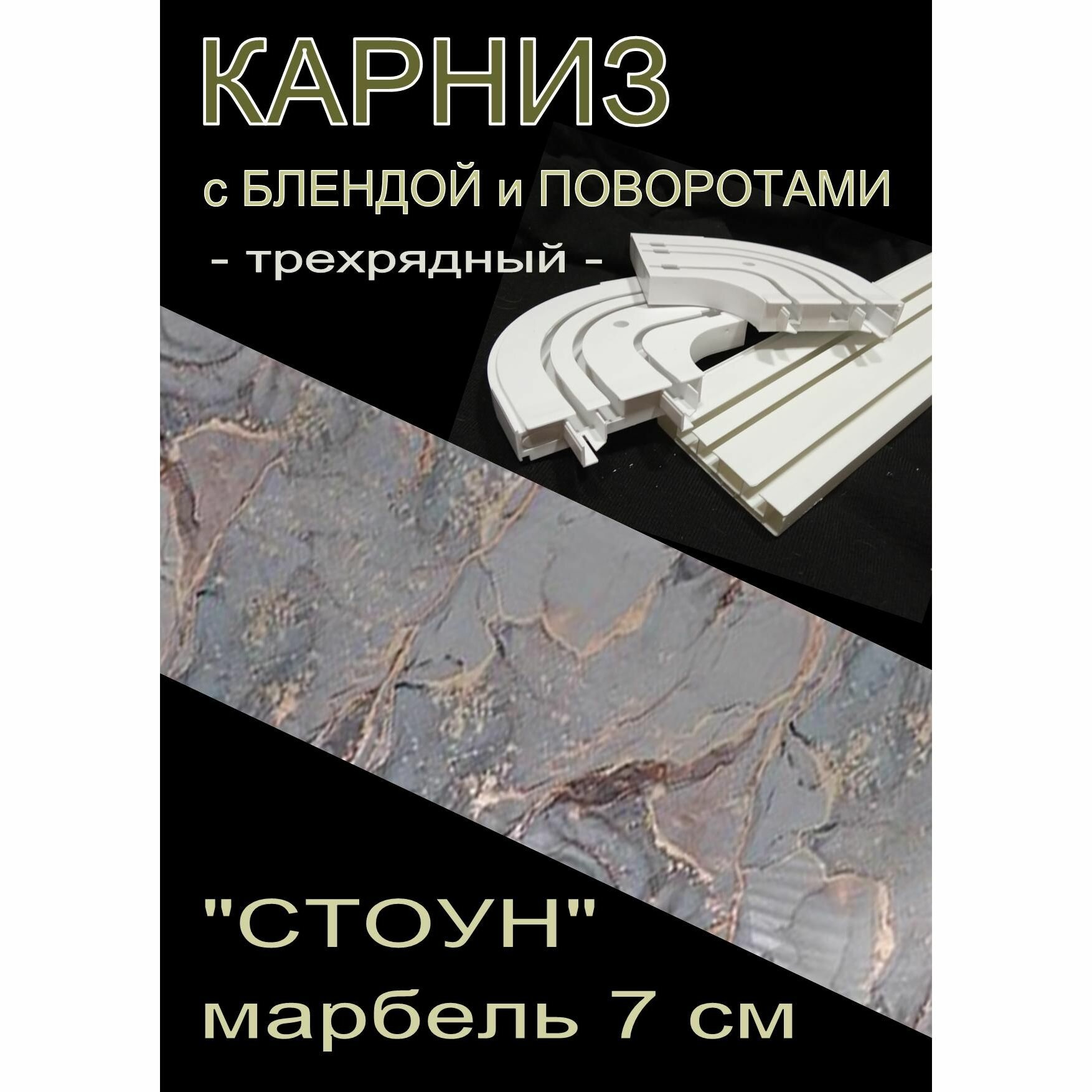 Багетный карниз ПВХ с поворотами, 3-х рядный, 240 см, "Стоун", марбель 7см 1 345 ₽