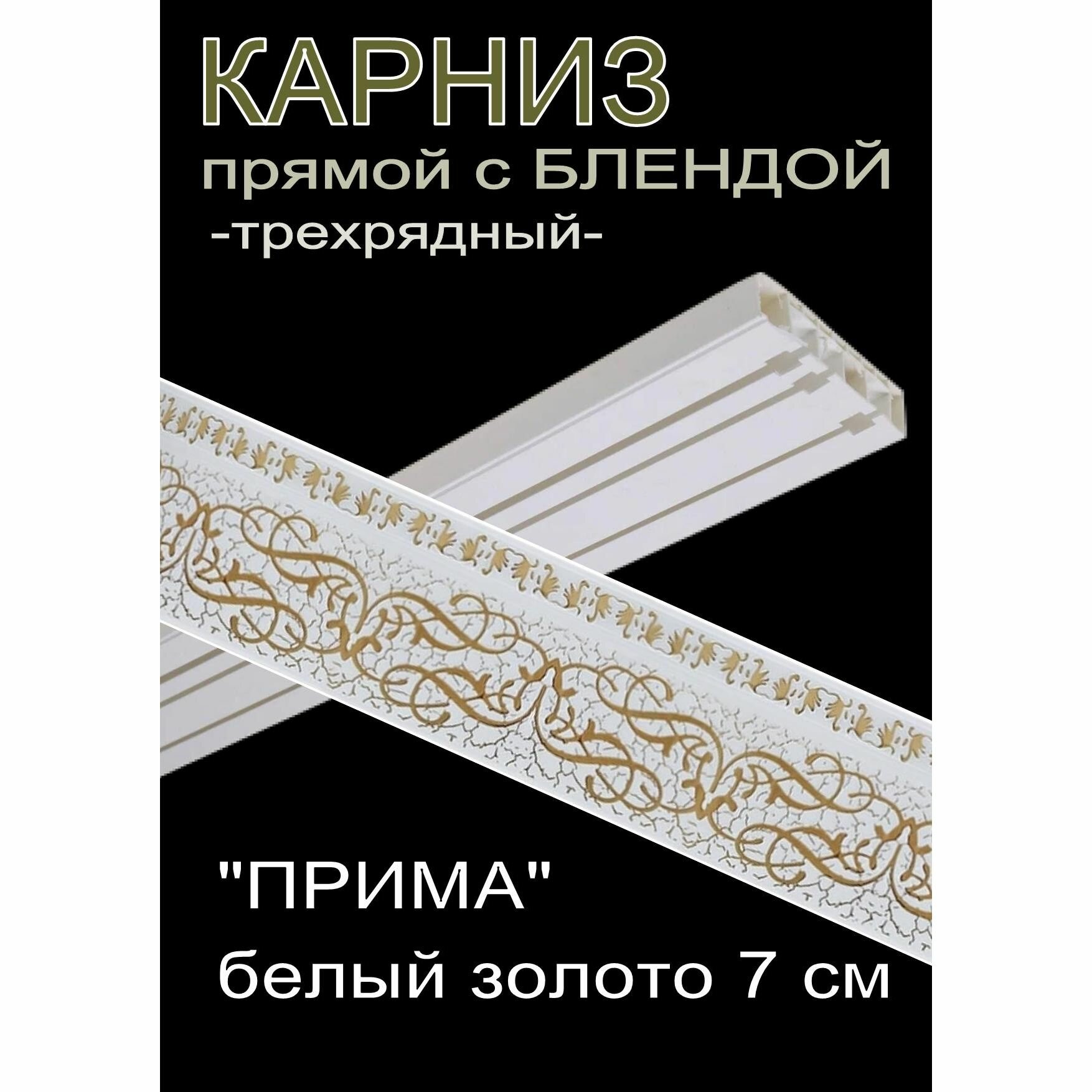 Багетный карниз, прямой, составной, 3-х рядный, 400 см, "Прима", белый золото 7 см информация: