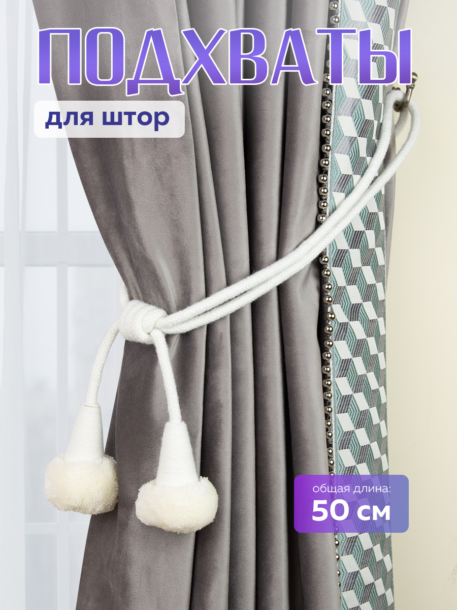 Подхваты для штор "Mirtex", с помпонами, молочный, 50х5.5см, 1шт информация: