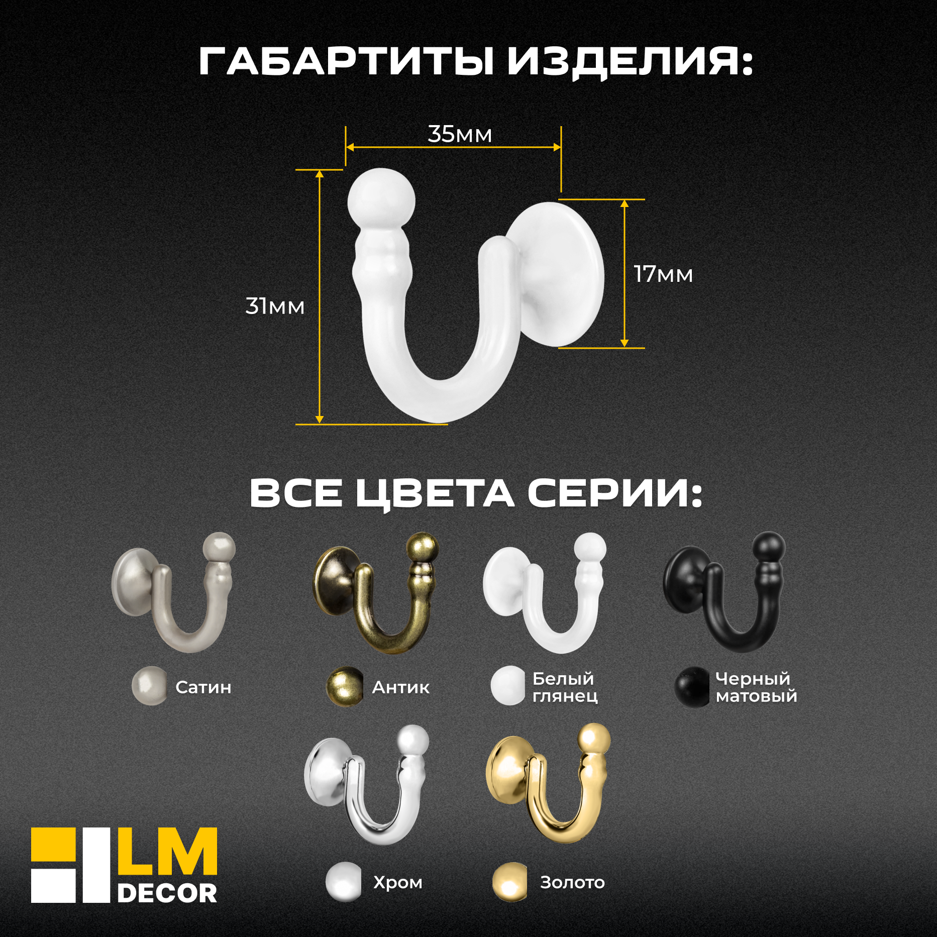 Крючки под подхваты, держатель штор LM DECOR Белый Глянец 2 шт информация: