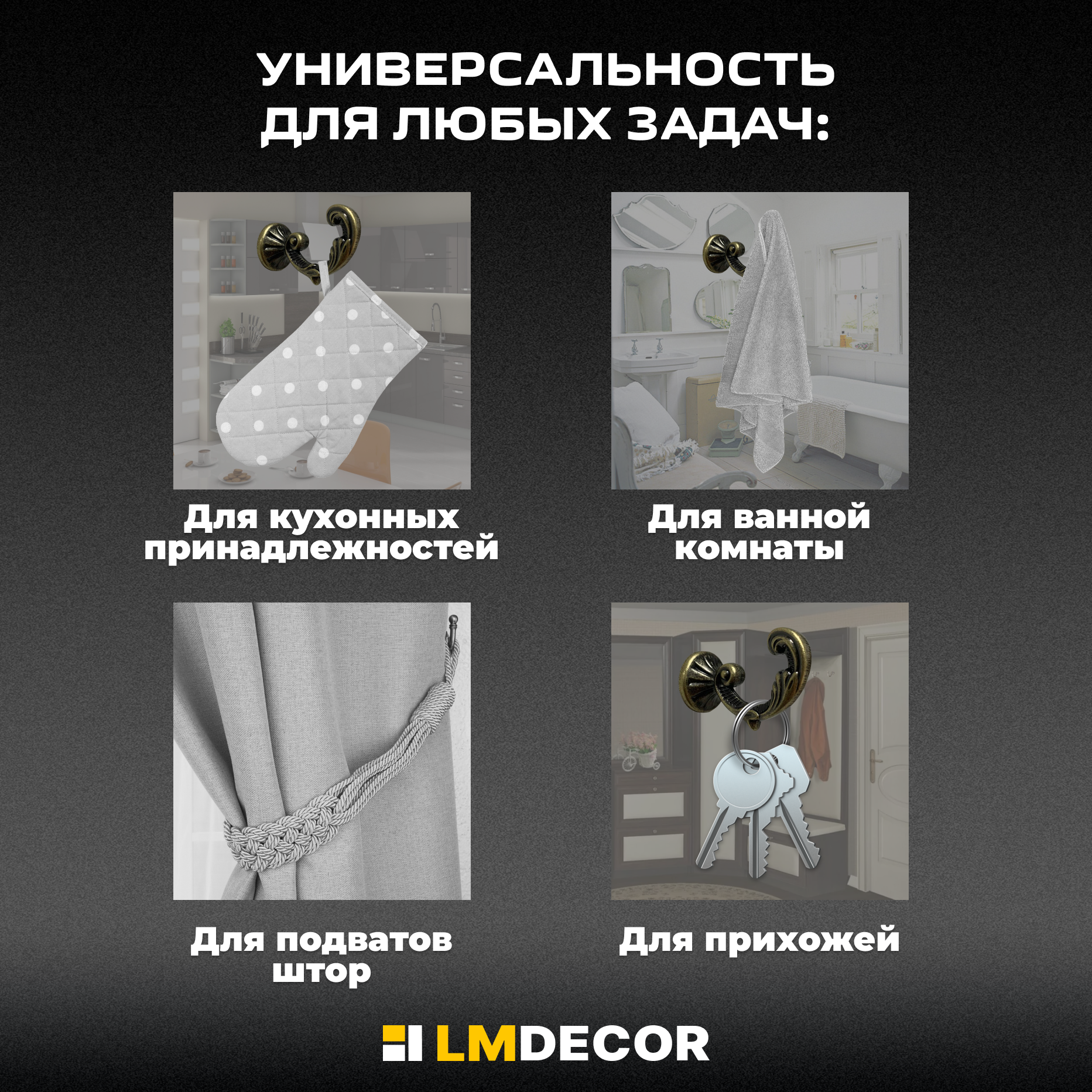Отзывы на Крючки под подхваты, держатель штор LM DECOR "Венеция" Антик 2 шт