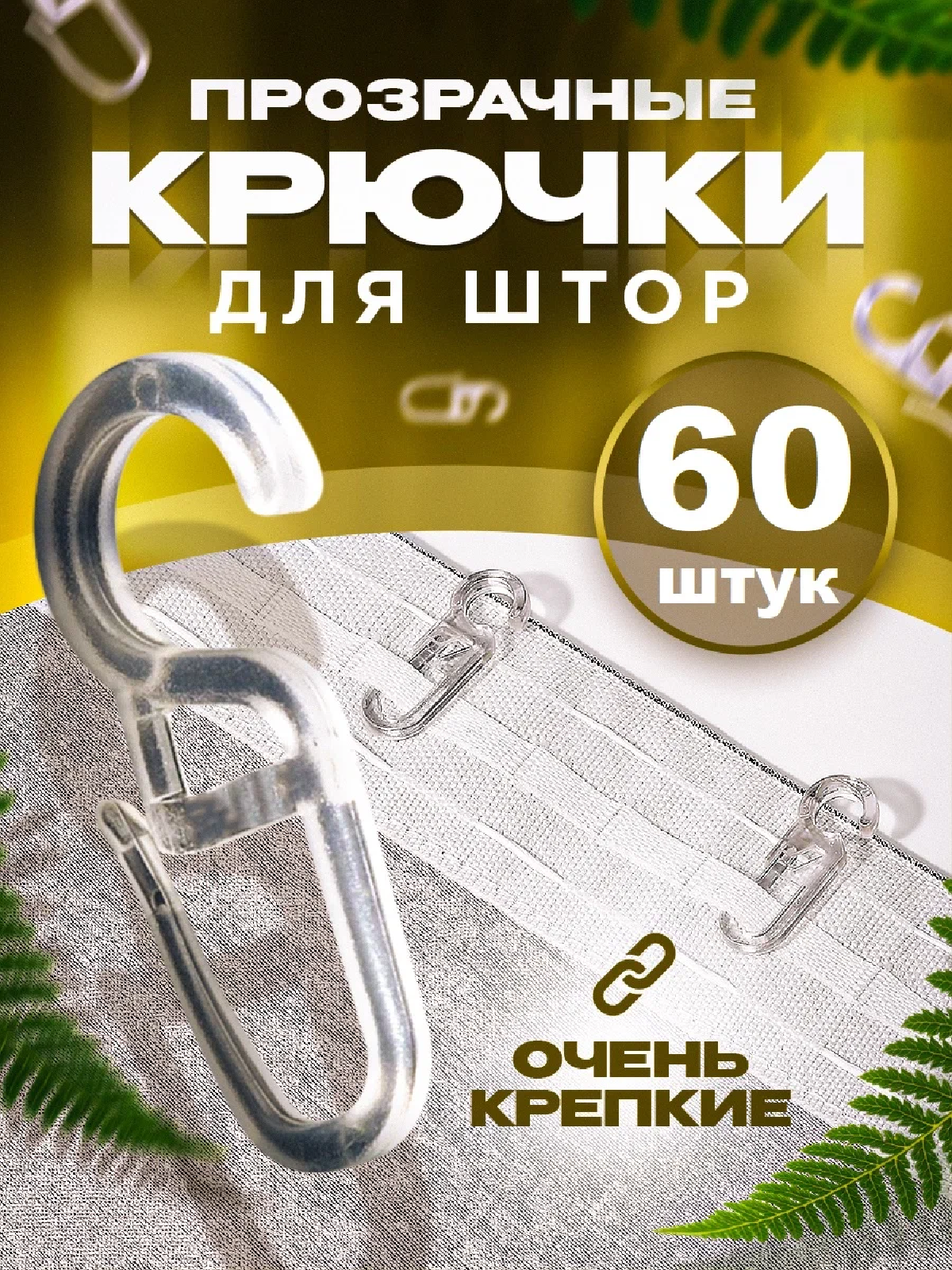 Крючки для штор 60 шт. прозрачные, кольца приобретаются отдельно, гелиосхит. информация: