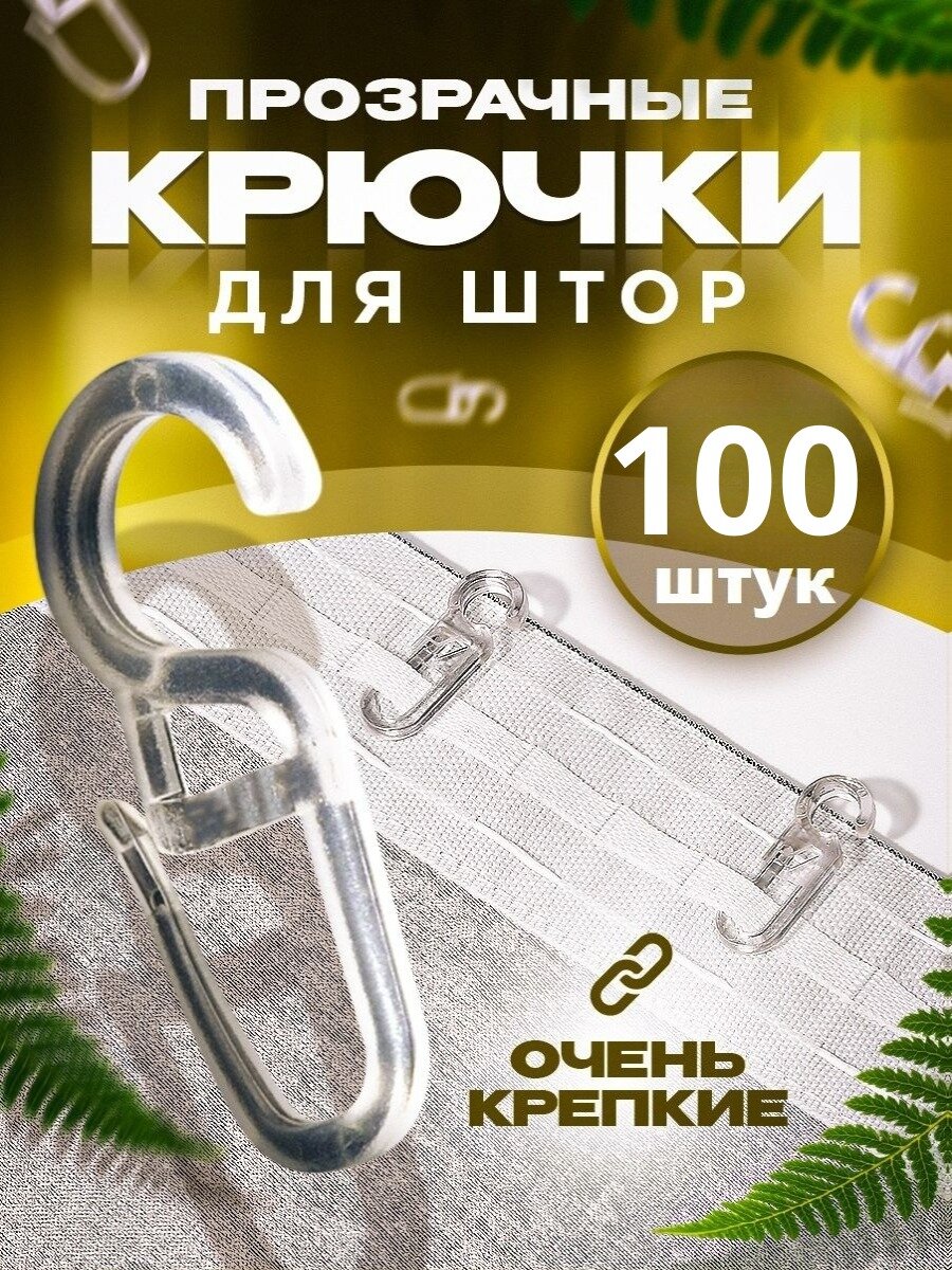 Крючки для штор 100 шт. прозрачные, кольца приобретаются отдельно, гелиосхит. информация: