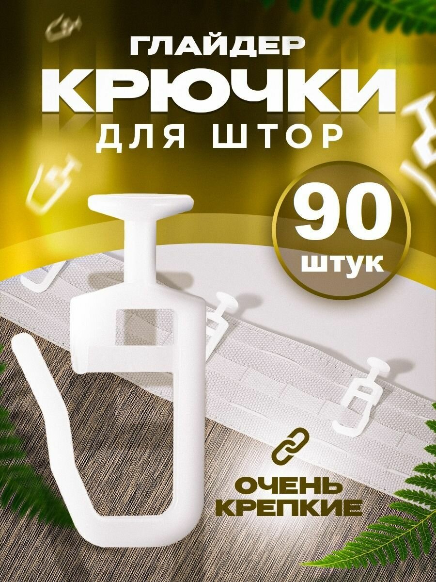 10 цен на Крючки для штор "глайдер" - 90штук, белые, прочные, используются для шинных карнизов, гелиосхит.