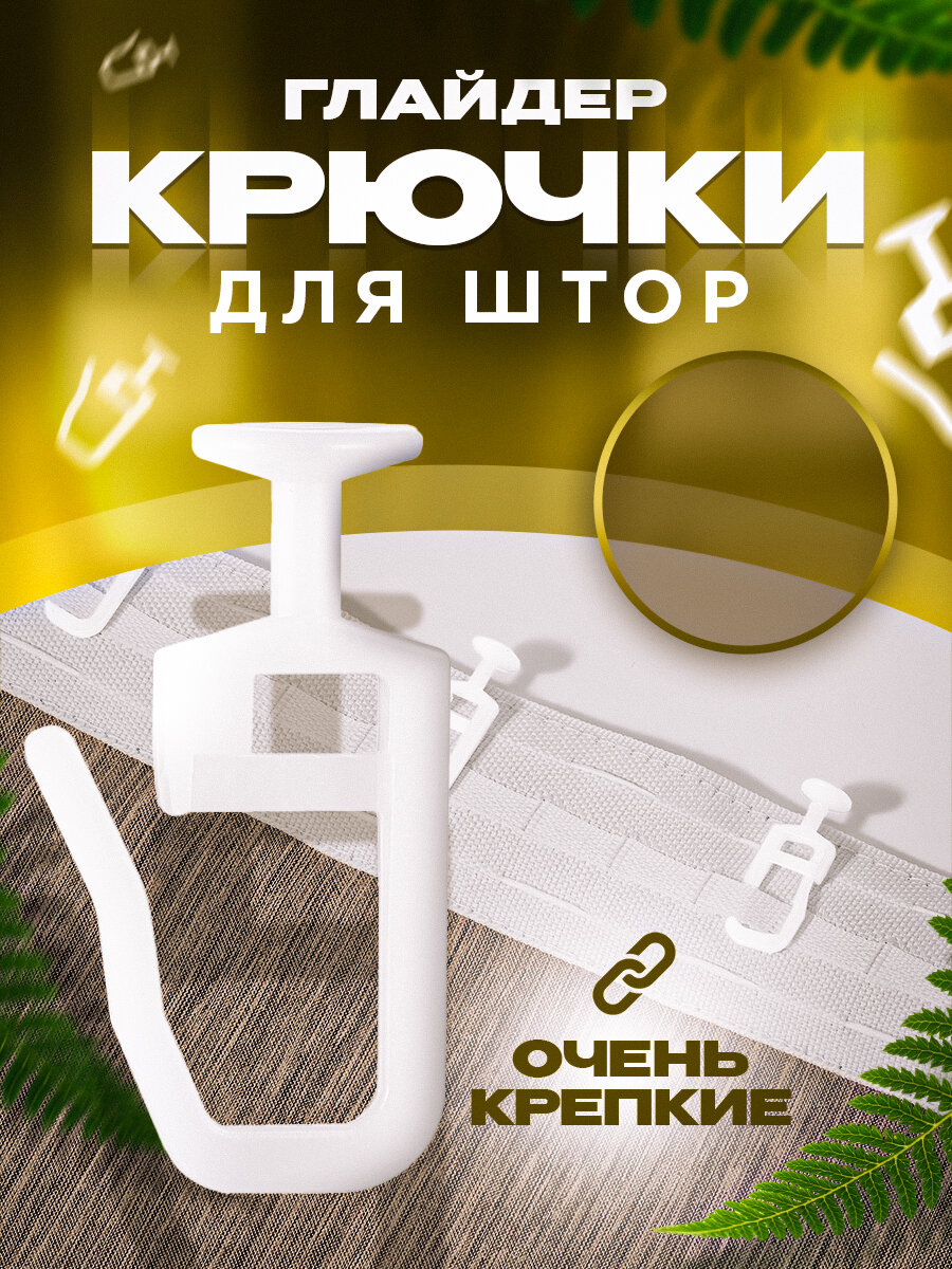 Крючки для штор "глайдер" - 60штук, белые, прочные, используются для шинных карнизов, гелиосхит. информация: