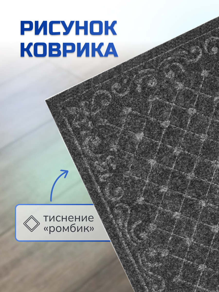 Коврик влаговпитывающий, 60х90 см, цвет серый, с рисунком, In'Loran информация: