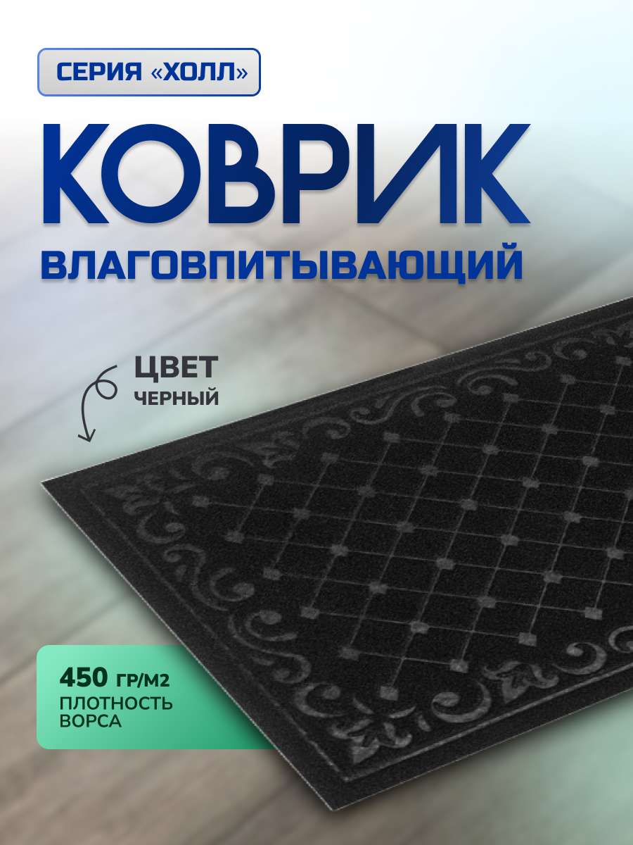 Коврик влаговпитывающий, 60х90 см, цвет черный, с рисунком, In'Loran информация:
