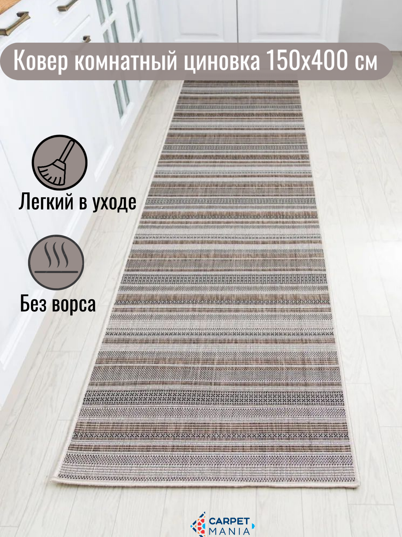 10 цен на Ковер безворсовый прямоугольный 52308 Beige 150х400см; в эко-стиле; современный плетеный ковер в столовую; 1.5 x 4 м