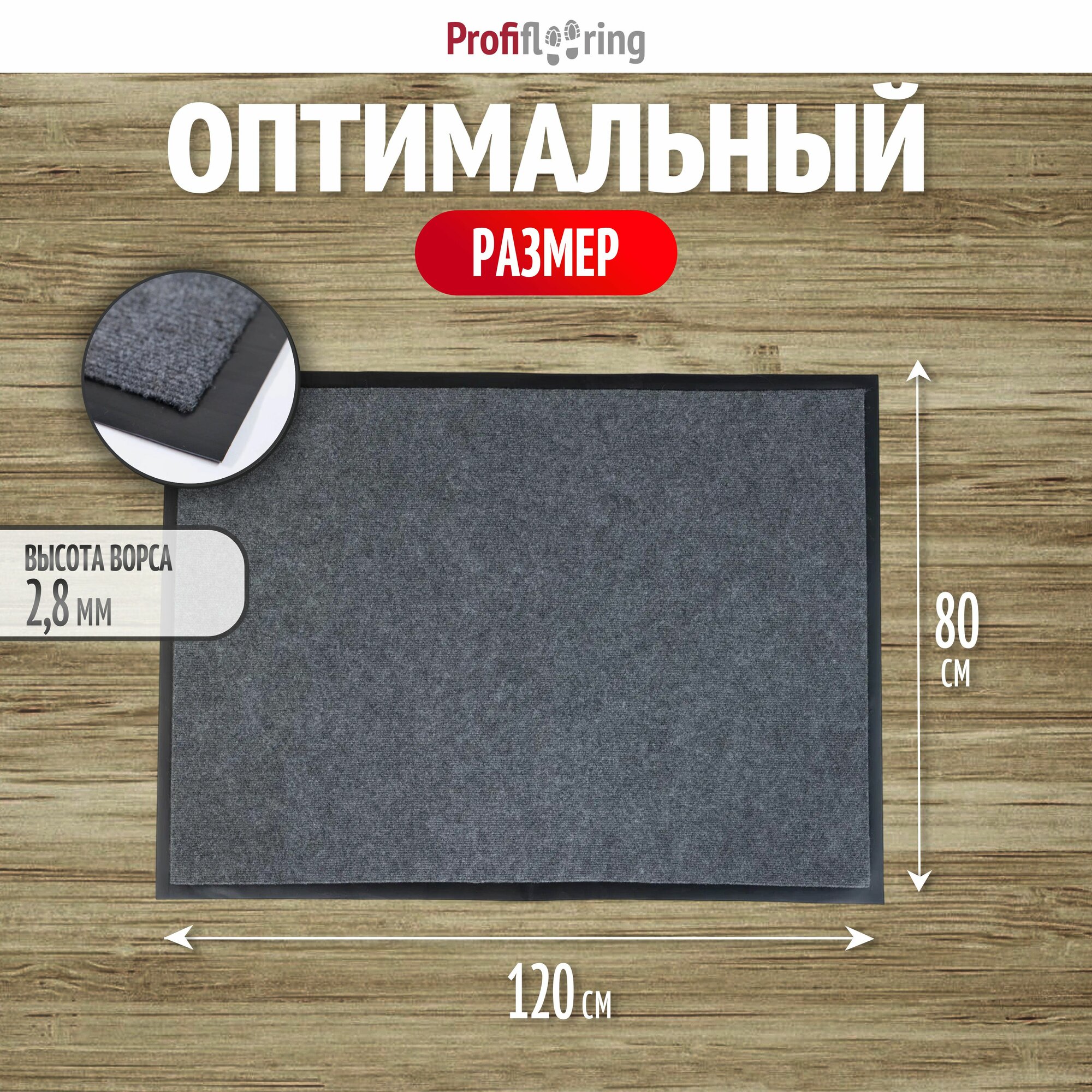Коврик в прихожую Profiflooring серый 80х120 влаговпитывающий информация: