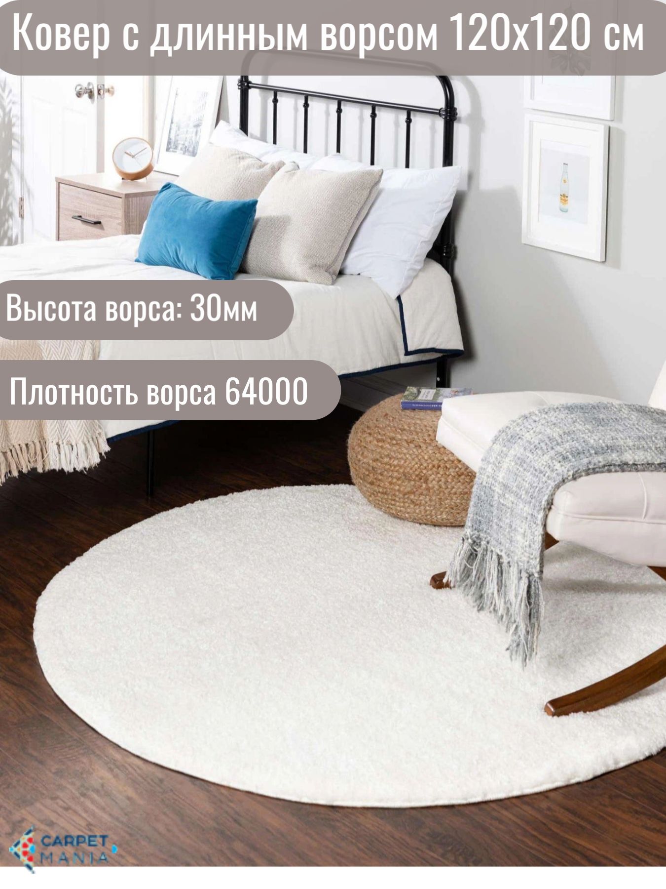 10 цен на Круглый ковер с длинным ворсом 42300_120х120см, комнатный; на пол; в прихожую; в прикроватный; придверный;