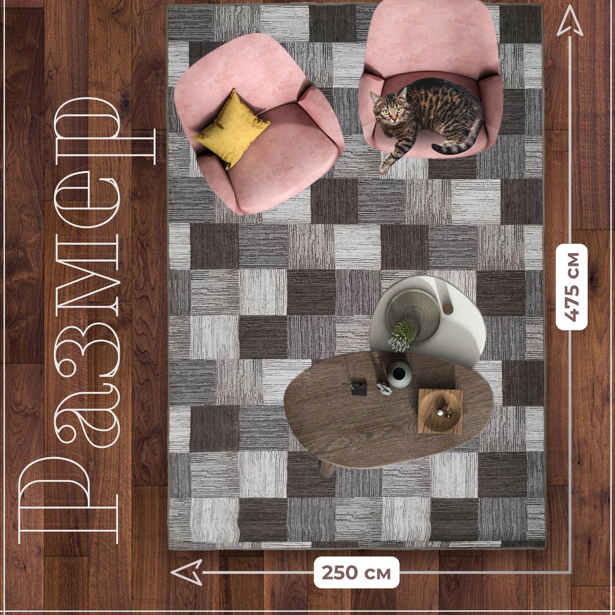 Отзывы на Ковер безворсовой "Плитка", коричнево-серая на войлоке. Размер 250х475 см