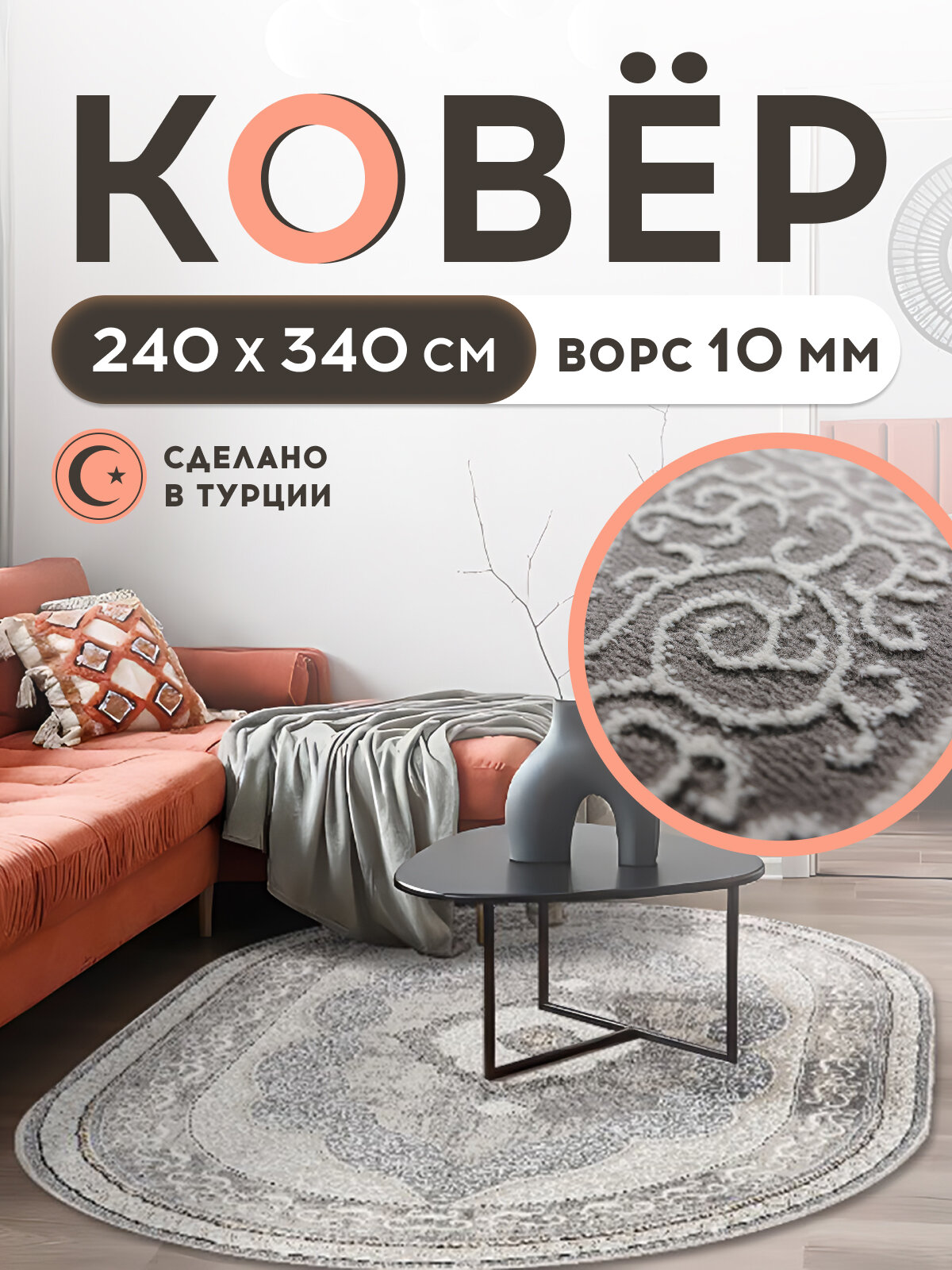 Ковер - BEIGE Турция - Овал - коллекция Niles (240 на 340) в гостиную, зал, спальню, кухню, прихожую, кабинет, комнату. информация: