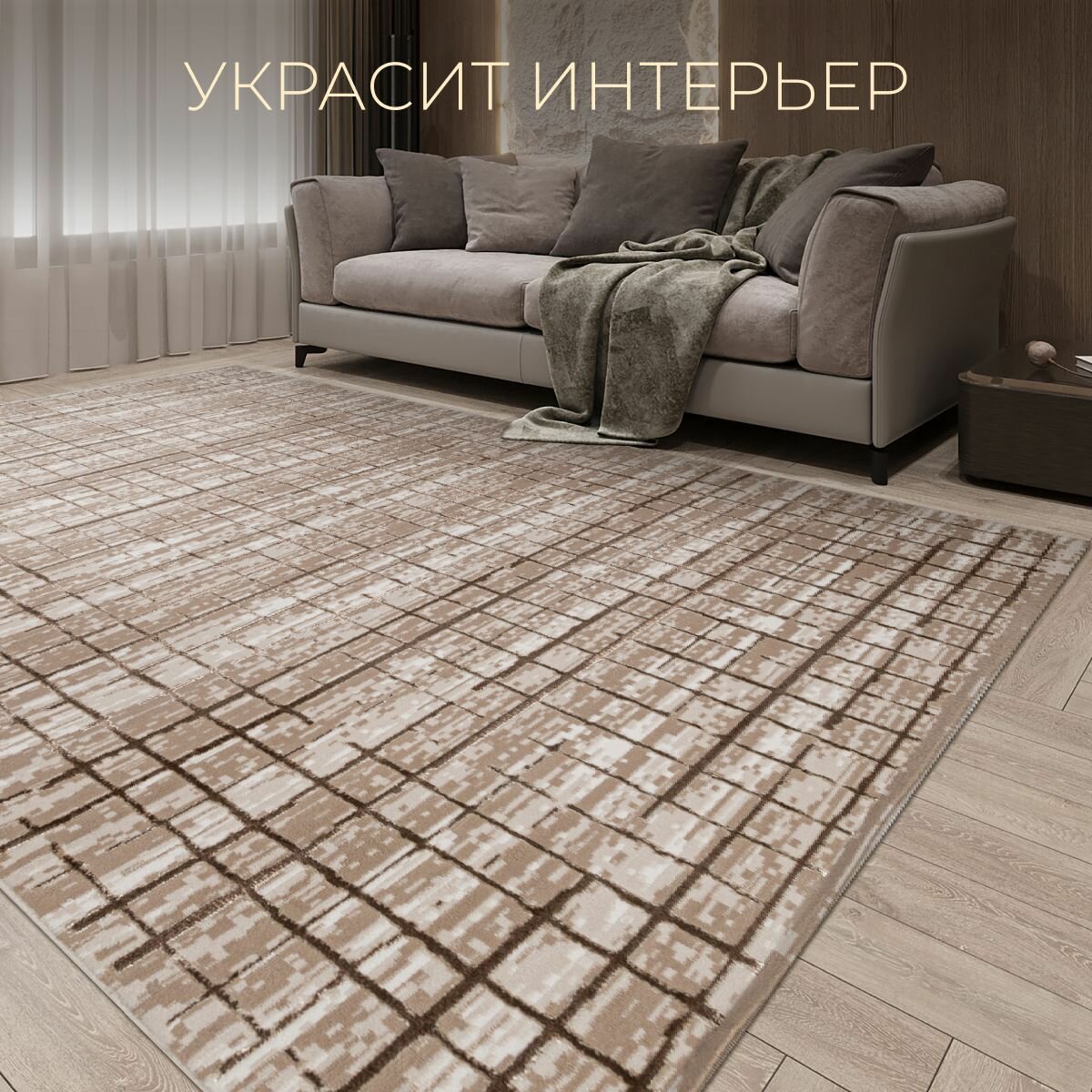 Ковер "Cream-Grey" из Турции, прямоугольный (150x200) в гостиную, зал, спальню, кухню, прихожую, кабинет и комнату