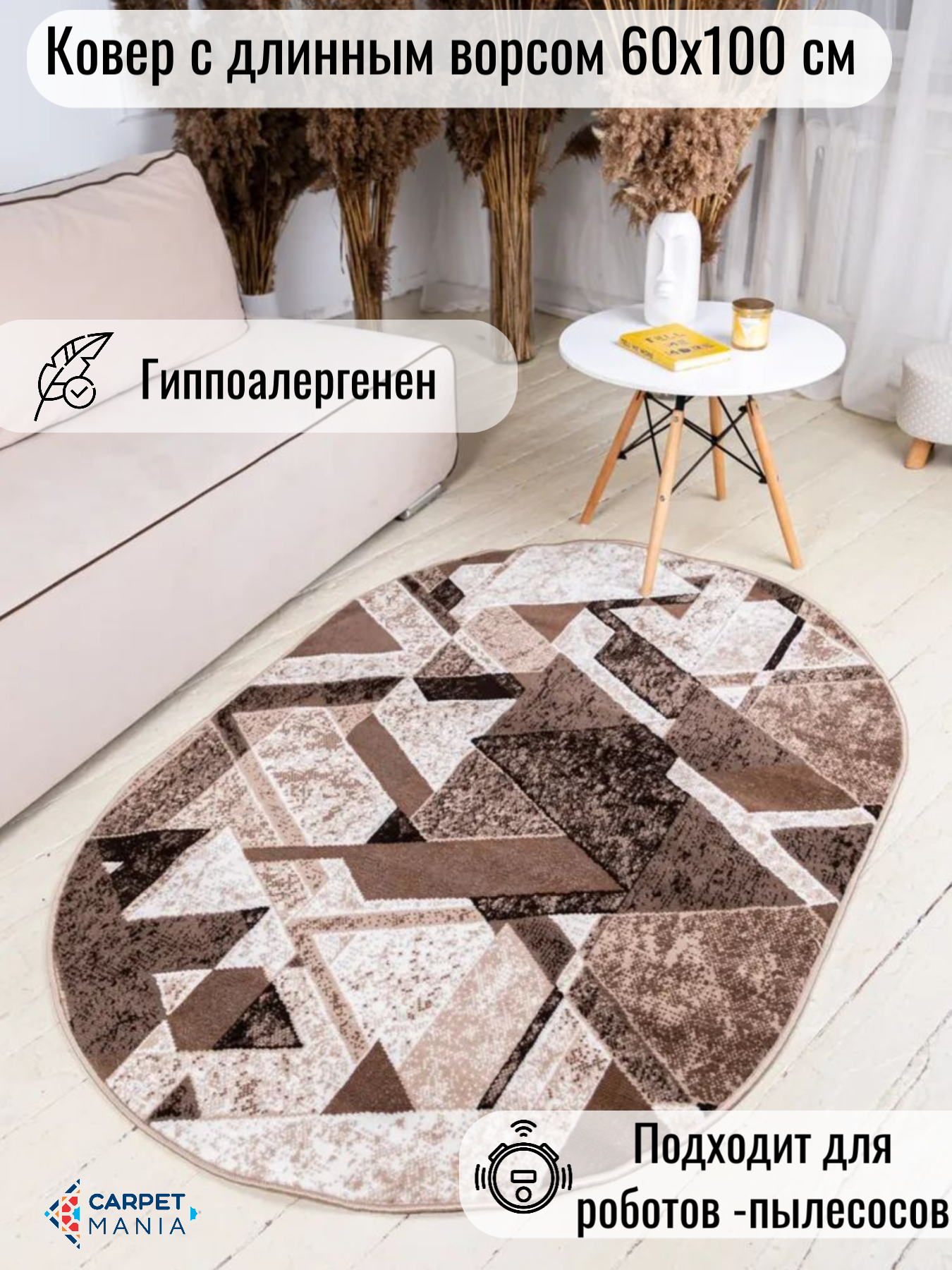 Ковер CARPET_MANIA Овал Cream-Brown, 100x200, ворс, геометрический рисунок, коричневый 4 200 ₽