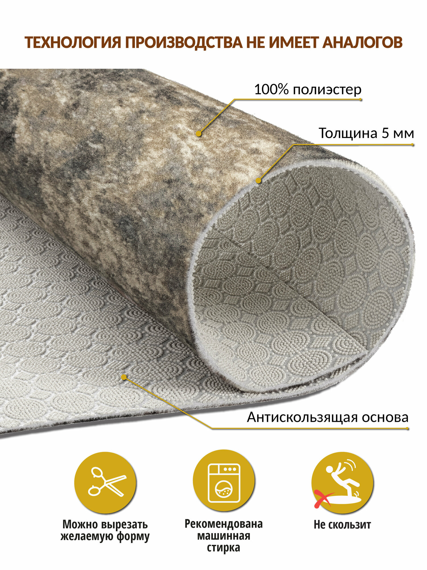 Ковер дорожка для кухни на пол Icarpet PRINT 60х200 Гранит коричнево-серый 139, придверный, прикроватный, вырезной информация: