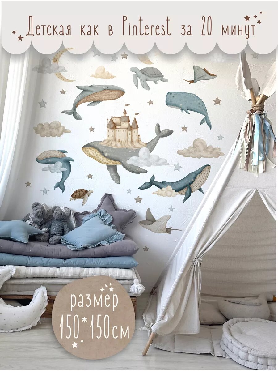 10 цен на Наклейки на стену детские интерьерные декор киты