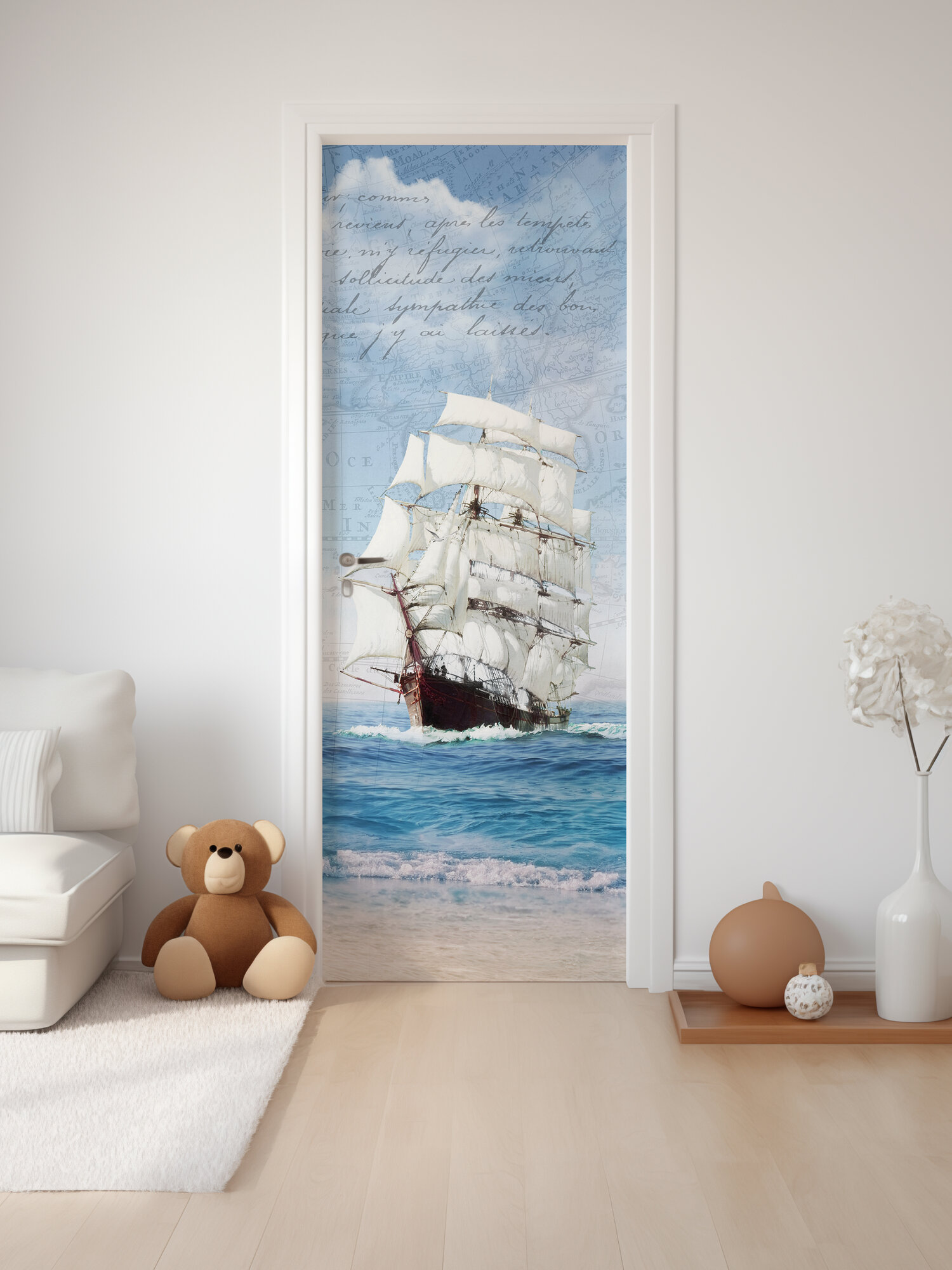 10 цен на Плотная виниловая самоклеящаяся интерьерная наклейка на дверь "Корабль" 80х210 см, самоклейка на шкаф, мебель