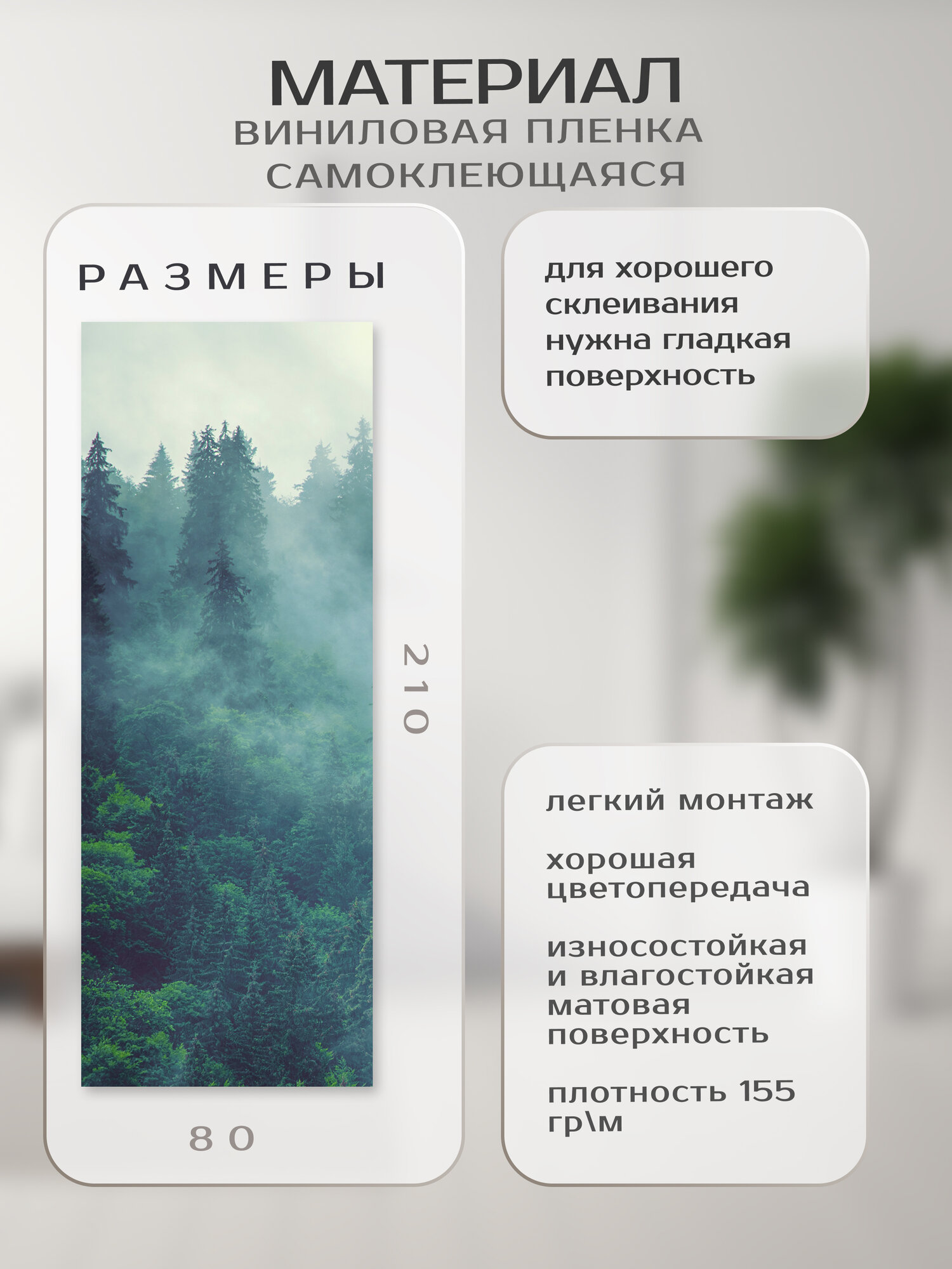 Отзывы на Плотная виниловая самоклеящаяся интерьерная наклейка на дверь "Лес" 80х210 см, самоклейка на шкаф, мебель