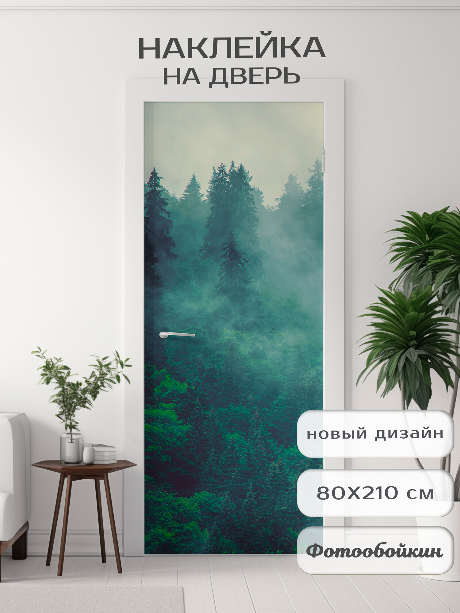 Плотная виниловая самоклеящаяся интерьерная наклейка на дверь "Лес" 80х210 см, самоклейка на шкаф, мебель информация: