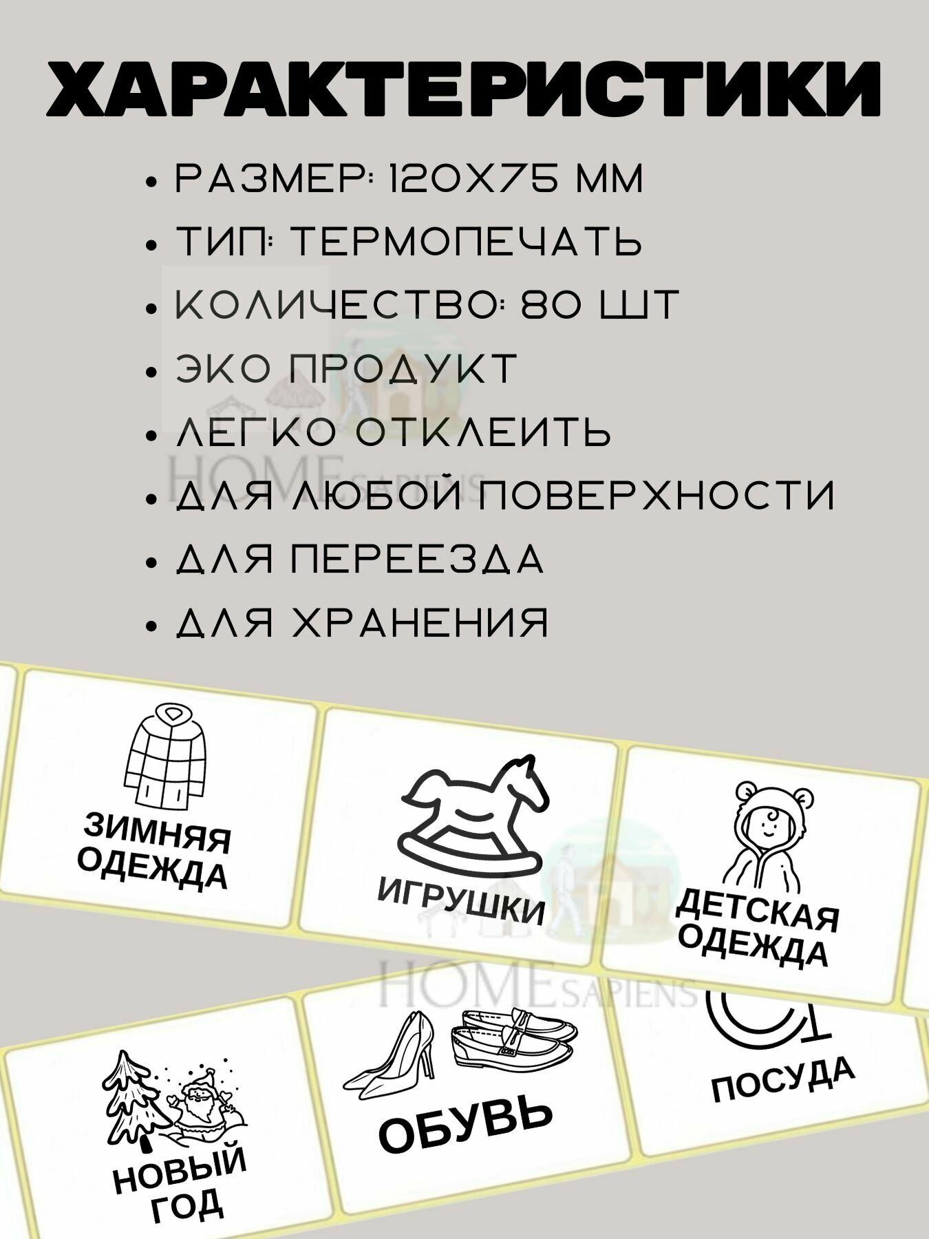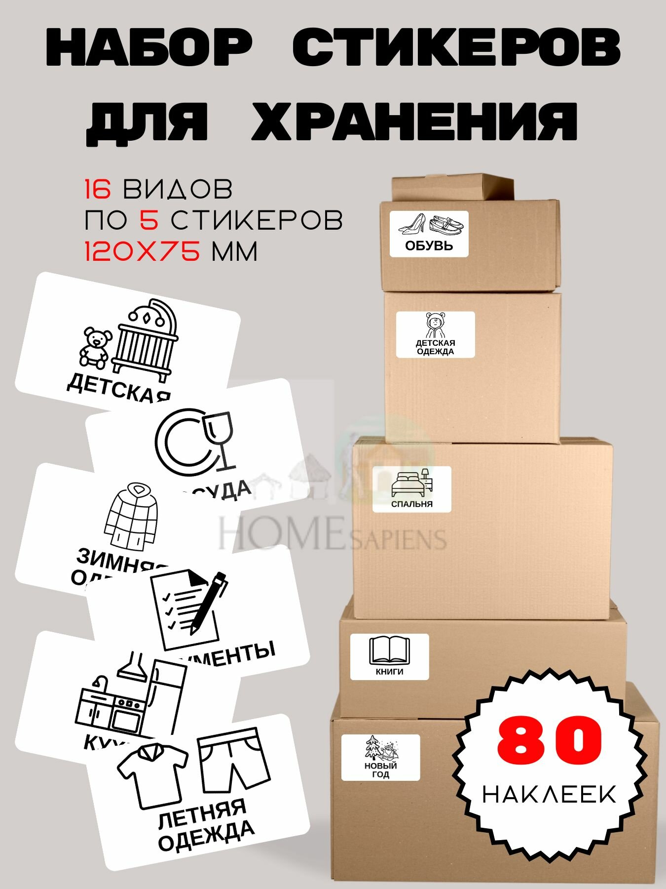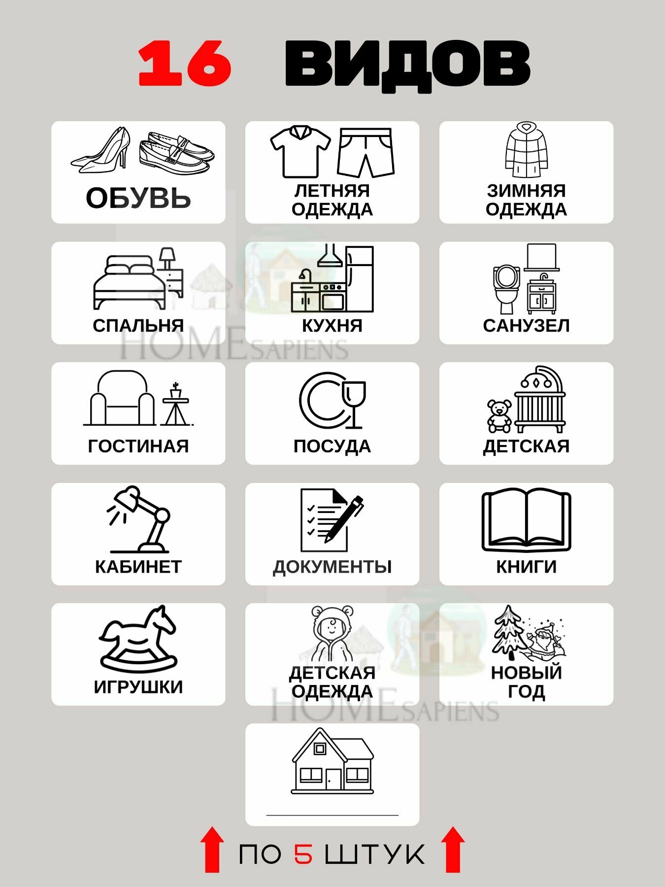 Набор наклеек для переезда и хранения вещей 80 шт. (120х75 мм.), этикетки для коробок информация: