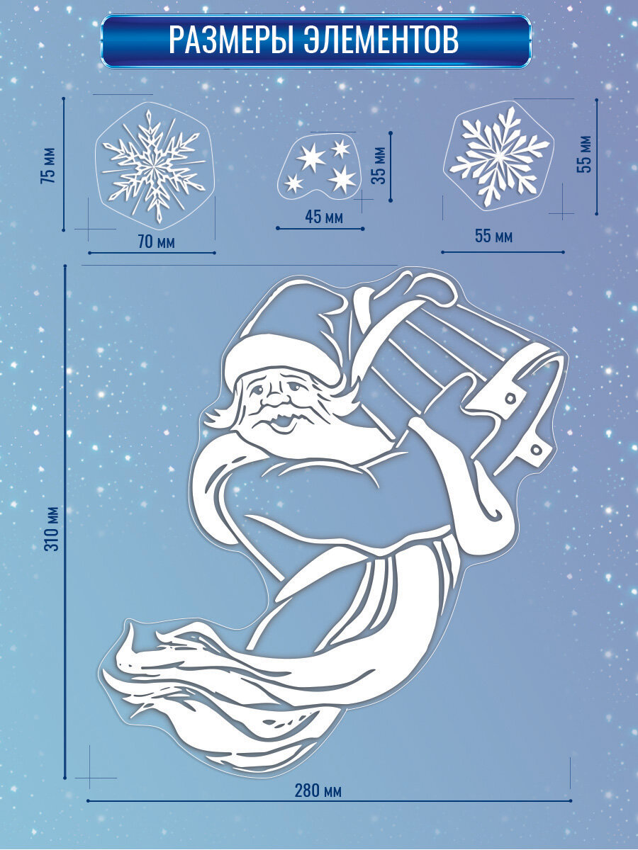 Новогодние наклейки с пластизолем и блёстками на окна "Дед Мороз с метелью" информация: