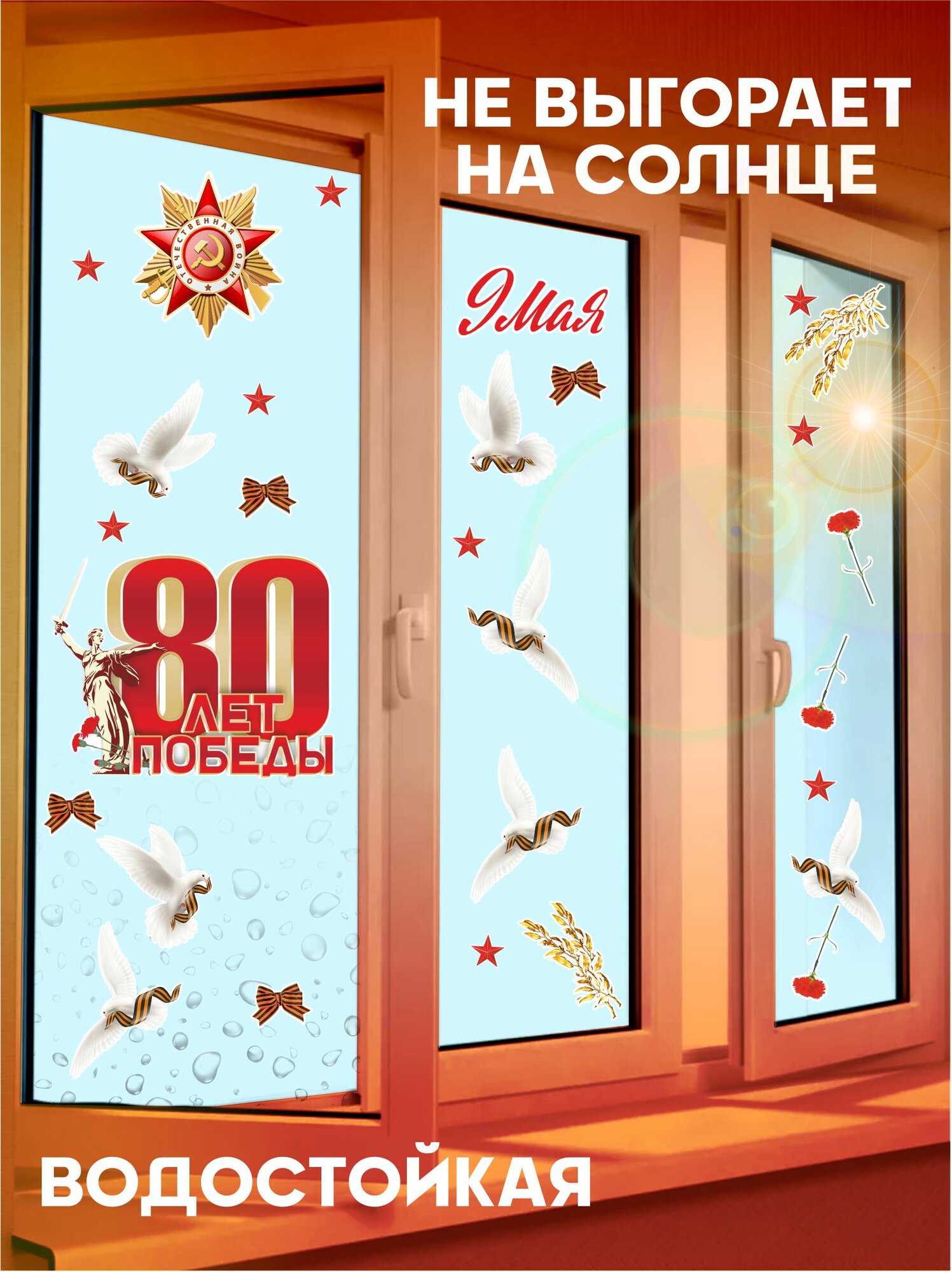 Виниловые наклейки на окна на стену 9 мая 80 лет победы информация: