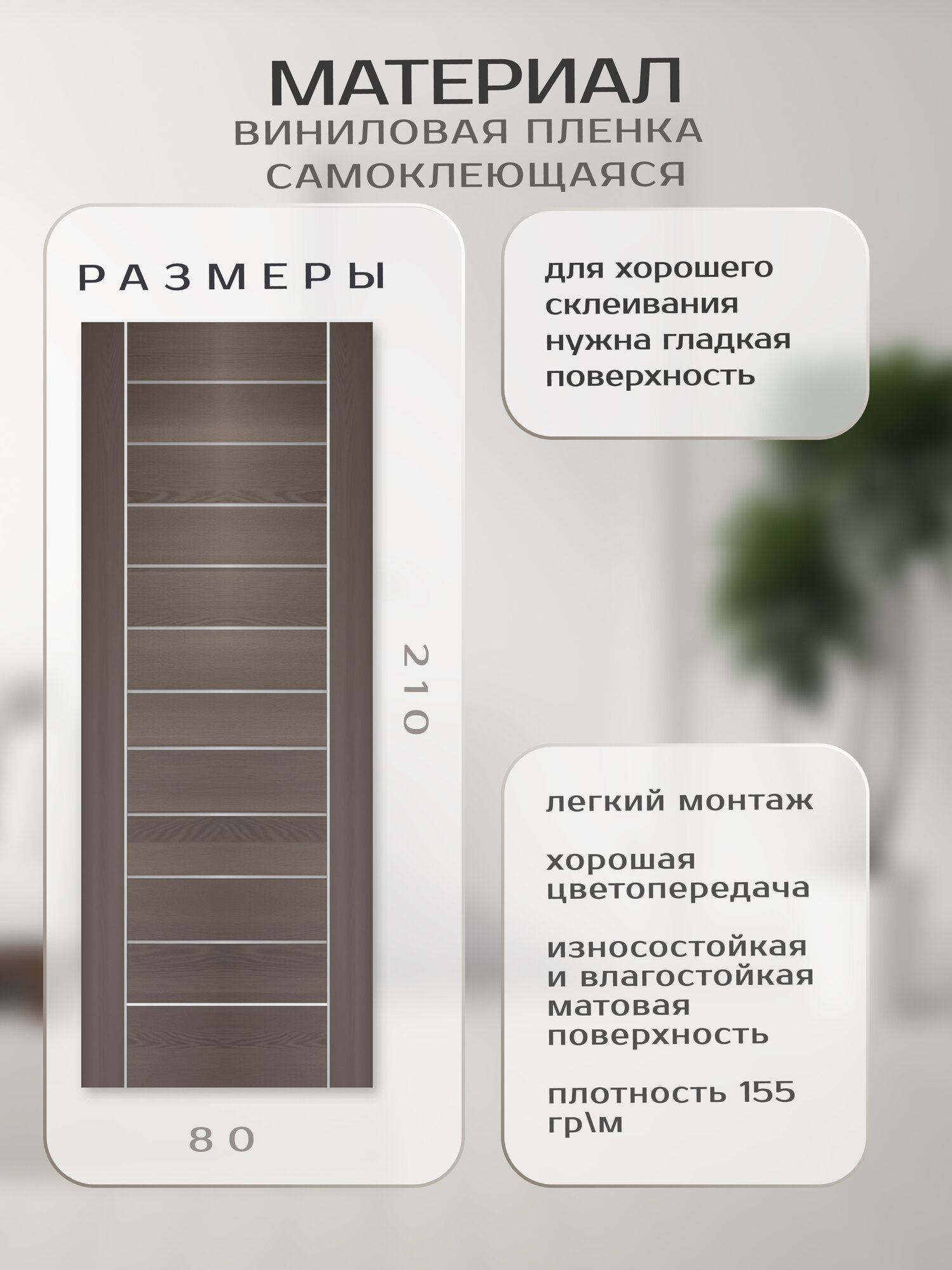 Самоклеящаяся пленка для мебили и дверей 80х210 см. Интерьерная наклейка на дверь.