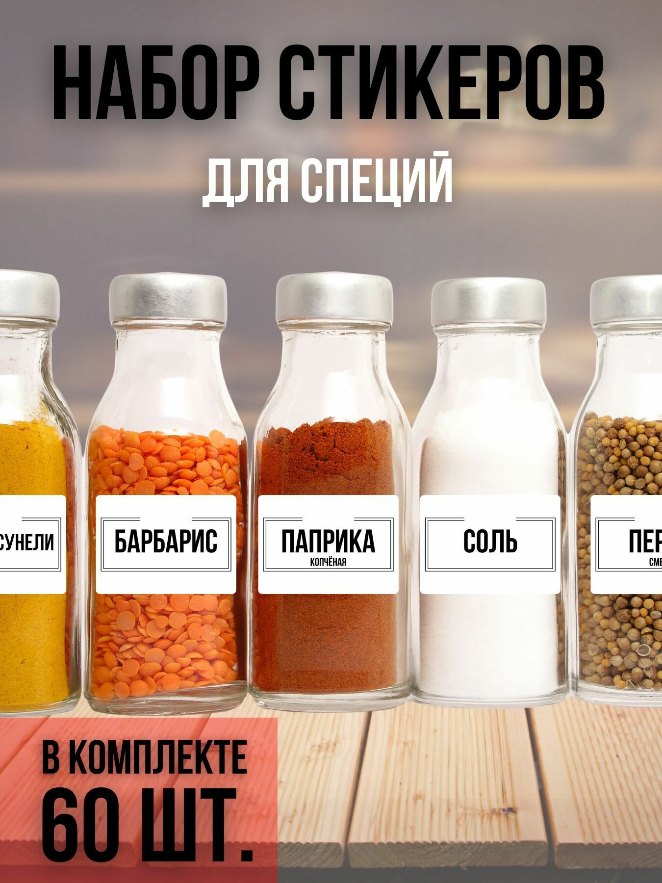 10 цен на Набор универсальных наклеек (60 шт.) для трав, специй и приправ на кухню для банок, бутылок, стикеры 30х20 мм.