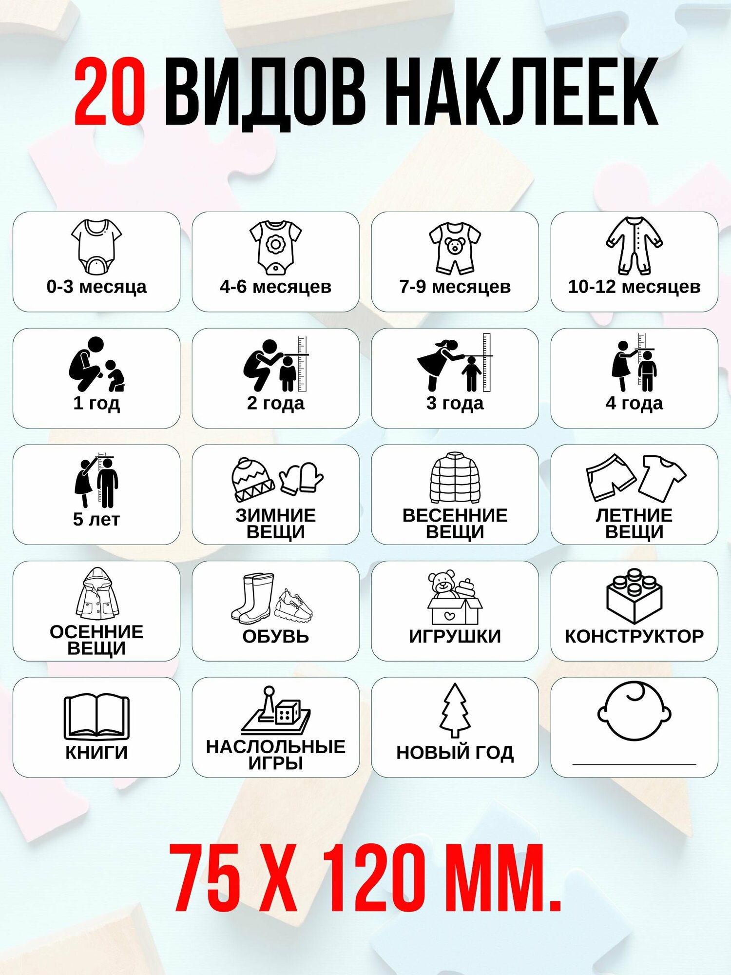 Отзывы на Набор наклеек для хранения детских вещей 100 шт. (120х75 мм.), этикетки для коробок