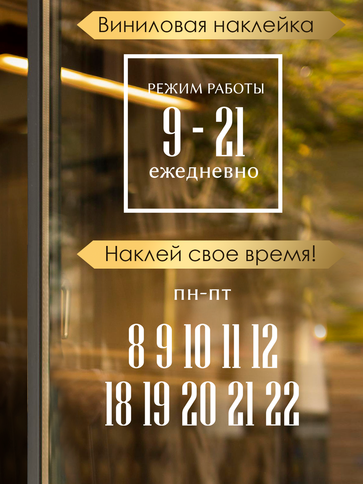 Наклейка 'Режим Работы 6' (часы работы магазина с выходными, выбери свое время) 726 ₽