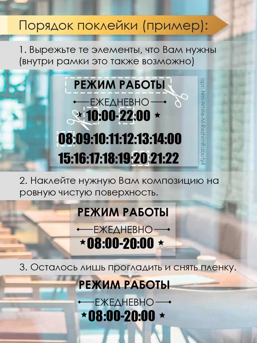 Наклейка 'Режим Работы 6' (часы работы магазина с выходными, выбери свое время) 726 ₽