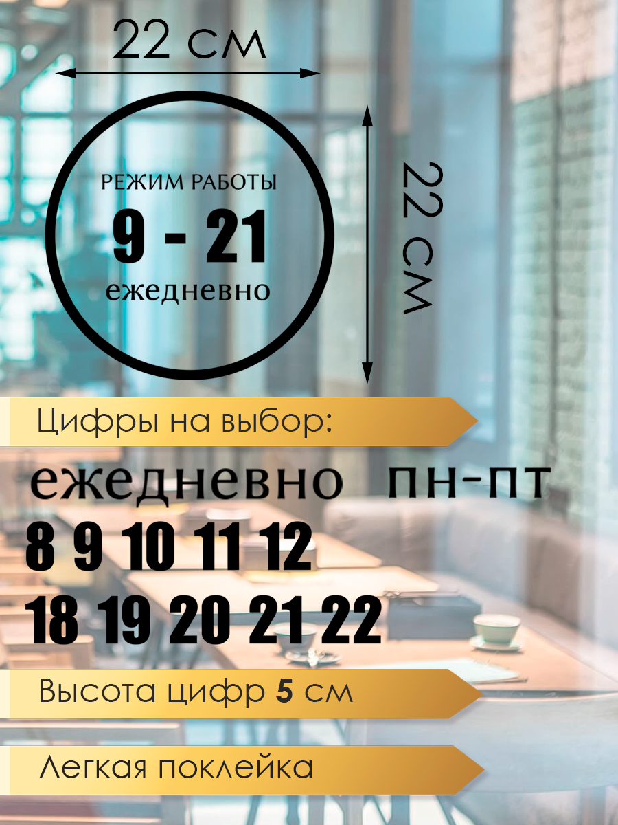 Наклейка 'Режим Работы 5' (часы работы магазина с выходными, выбери свое время) 726 ₽