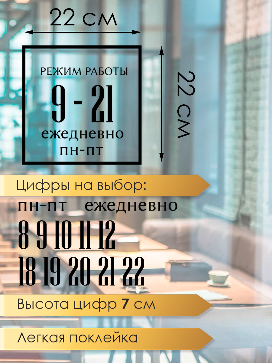 Наклейка 'Режим Работы 7' (часы работы магазина с выходными, выбери свое время) 726 ₽