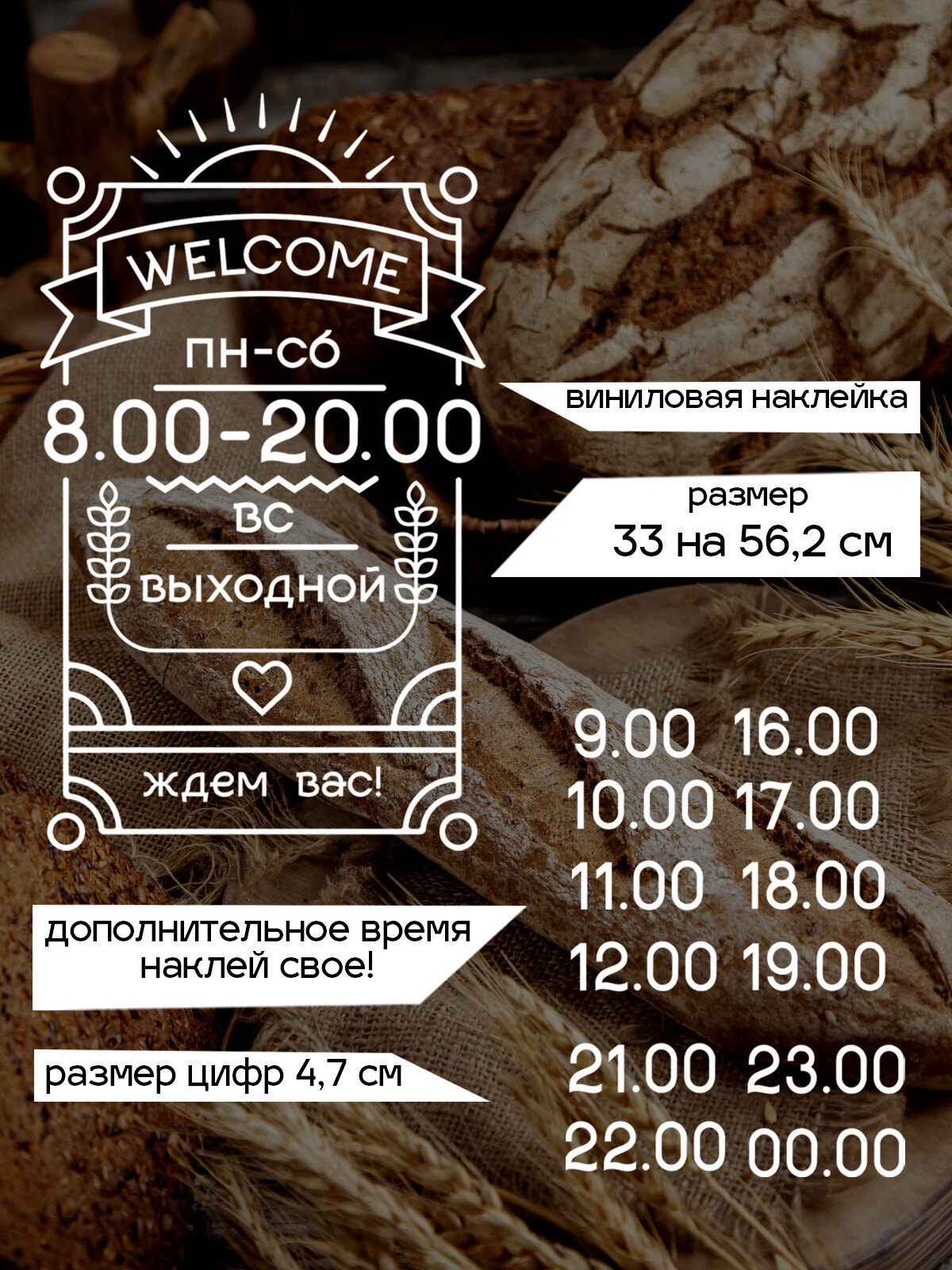10 цен на Наклейка 'Режим Welcome' (часы работы магазина с выходными, выбери свое время)