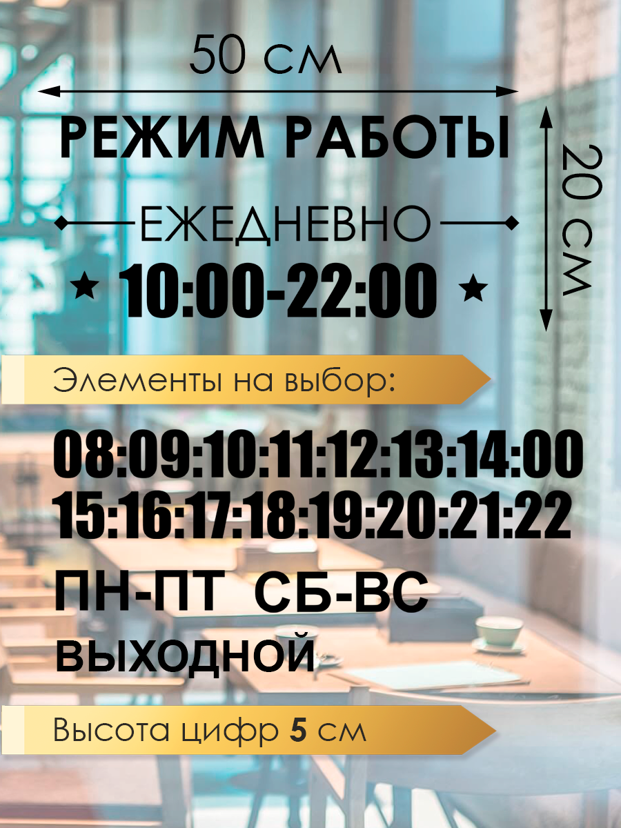 Наклейка 'Режим Работы 5' (часы работы магазина с выходными, выбери свое время) 726 ₽