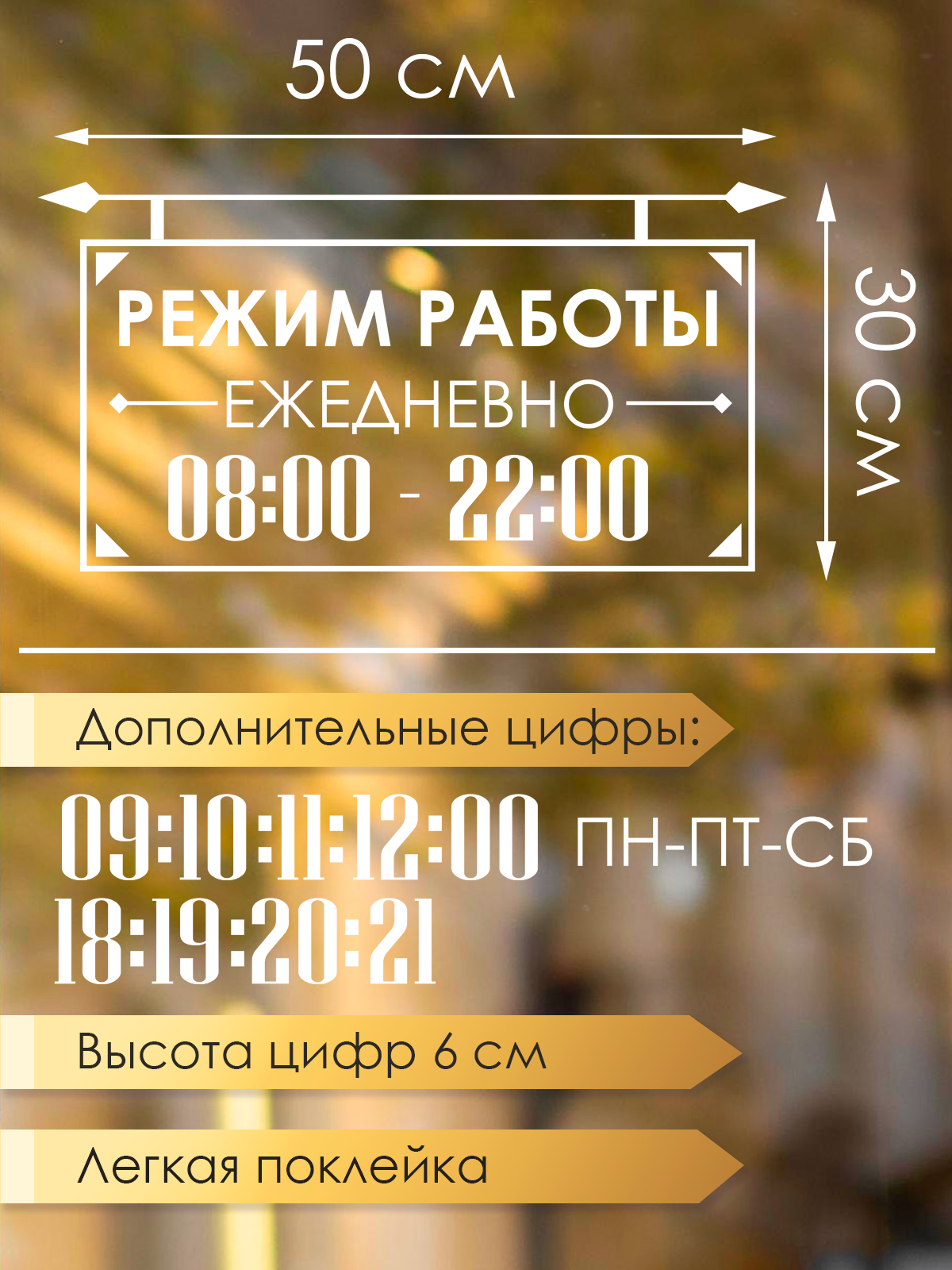 Наклейка 'Режим Работы 6' (часы работы магазина с выходными, выбери свое время) 726 ₽