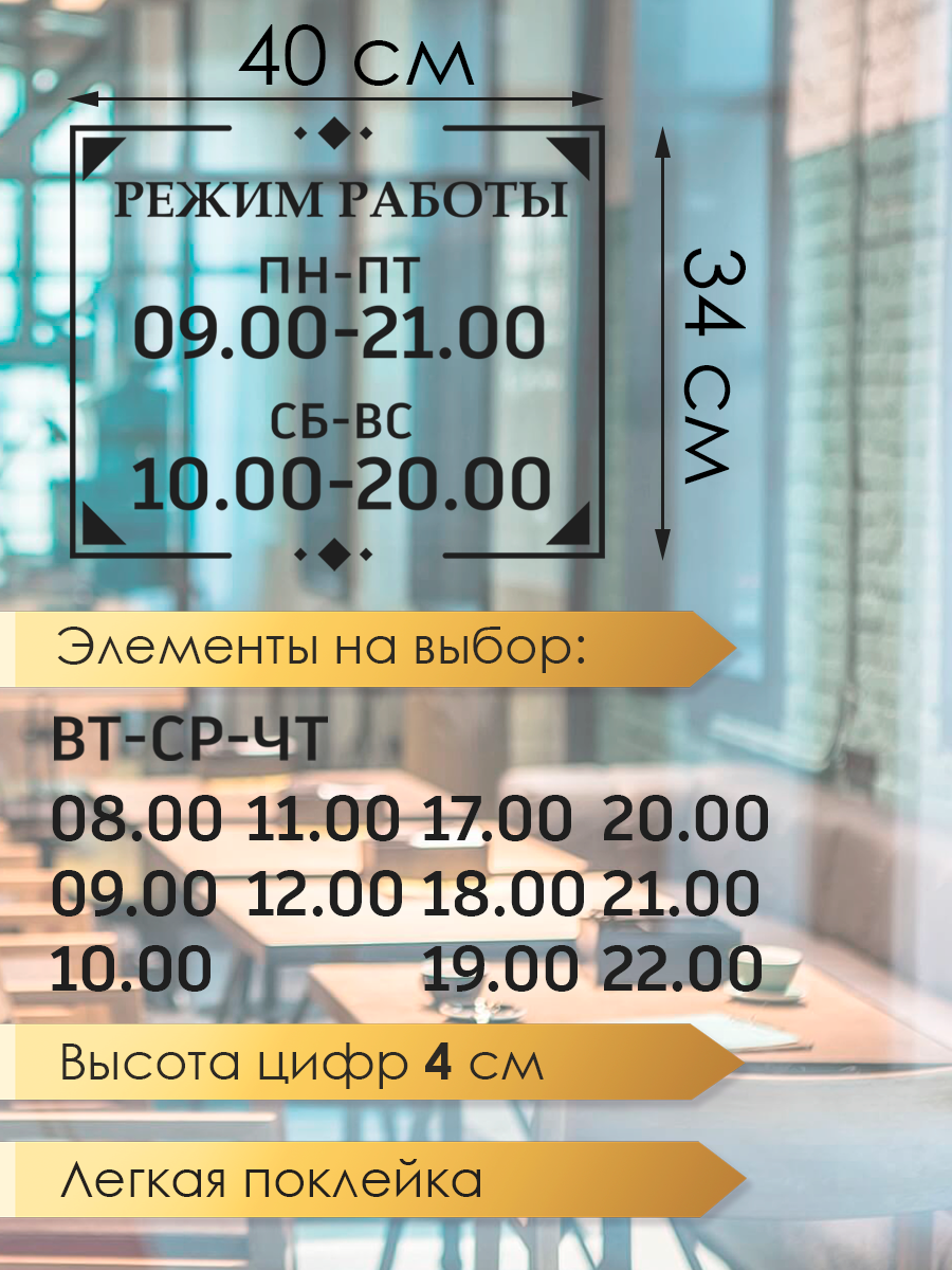 Наклейка 'Режим Работы 6' (часы работы магазина с выходными, выбери свое время) 726 ₽